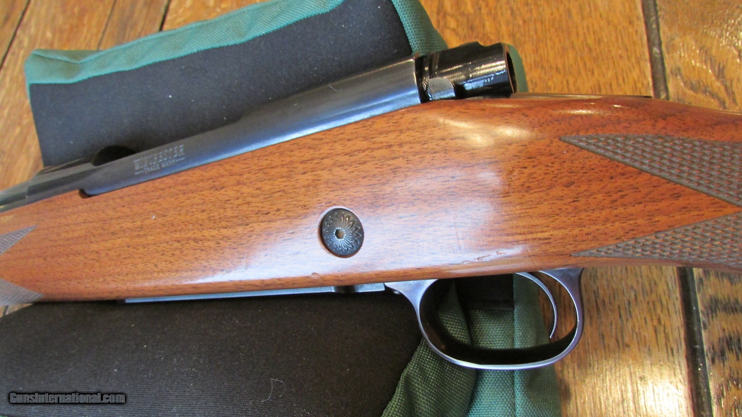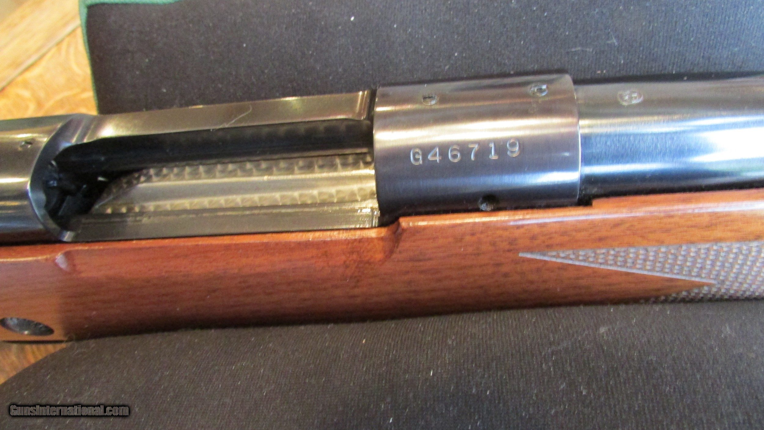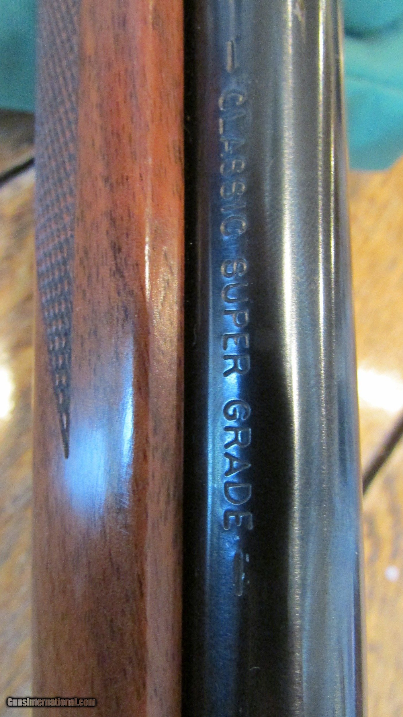 Description: Winchester's finest Model 70 Classic Super Grade improved third addition in the ever hard hitting 338 magnum. Features jeweled bolt and follower, stainless steel extractor for true claw control round feeding and ejecting, 26" barrel, three position safety, checkered satin finished Walnut stock, cheek piece and black ebony fore end tip, plus inlaid sling swivel bases. The action and accuracy is far superior to any other bolt rifle. It is quality, accuracy and speed only Winchester can design. Very minor handling marks for wood or metal. Near perfect condition. A New Haven five digit serial numbered rifle. $50.00 to ship to your FFL in lower 48 and more to AK or HI. SOLD Manufacturer: Winchester Repeating Arms Model: 70 Serial Number: G46719 Caliber Info: 338 Win Mag Bore: excellent Chambers: 338 Win Mag Ejectors: claw Condition: Like new Metal Condition: excellent Wood Condition: excellent Bore Condition: its a 10 Barrels: 26 Barrel Type: steel Action: bolt Triggers: standard Stock: checkered walnut Fore End: ebony tip Butt Pad: 1" Winchester recoil LOP: 14 Finish: satin Weight: 8 Sights: none Manufacture Date: 1992-93? Item Location: Medford, Or |