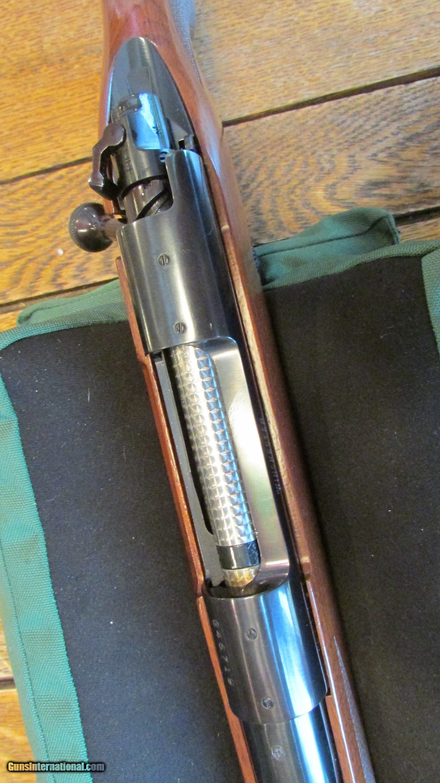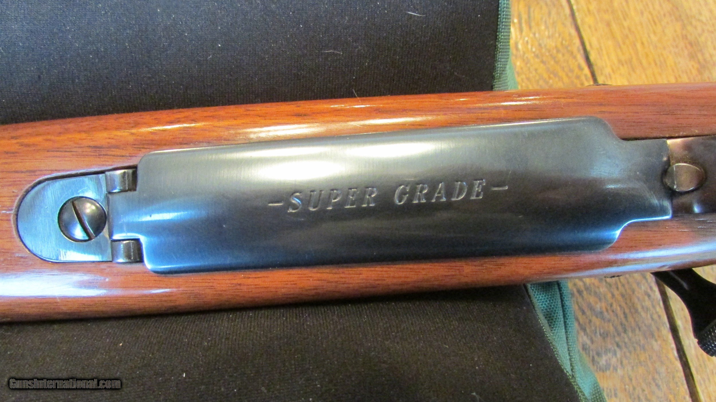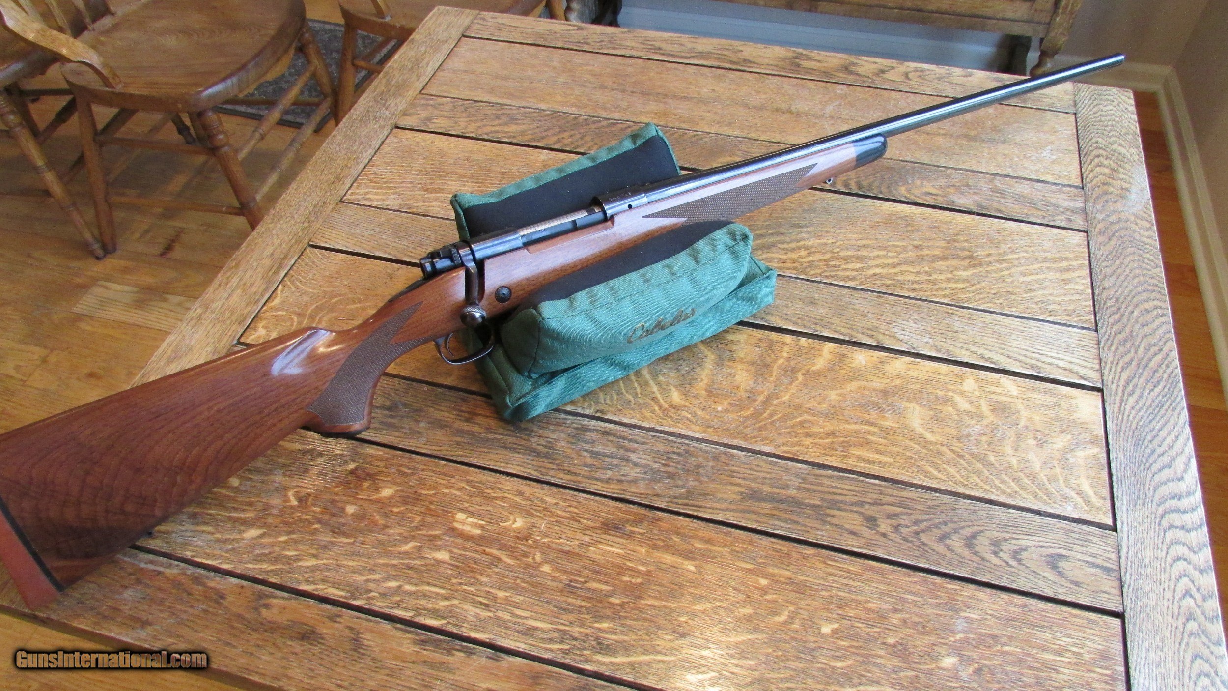 Description: Winchester's finest Model 70 Classic Super Grade improved third addition in the ever hard hitting 338 magnum. Features jeweled bolt and follower, stainless steel extractor for true claw control round feeding and ejecting, 26" barrel, three position safety, checkered satin finished Walnut stock, cheek piece and black ebony fore end tip, plus inlaid sling swivel bases. The action and accuracy is far superior to any other bolt rifle. It is quality, accuracy and speed only Winchester can design. Very minor handling marks for wood or metal. Near perfect condition. A New Haven five digit serial numbered rifle. $50.00 to ship to your FFL in lower 48 and more to AK or HI. SOLD Manufacturer: Winchester Repeating Arms Model: 70 Serial Number: G46719 Caliber Info: 338 Win Mag Bore: excellent Chambers: 338 Win Mag Ejectors: claw Condition: Like new Metal Condition: excellent Wood Condition: excellent Bore Condition: its a 10 Barrels: 26 Barrel Type: steel Action: bolt Triggers: standard Stock: checkered walnut Fore End: ebony tip Butt Pad: 1" Winchester recoil LOP: 14 Finish: satin Weight: 8 Sights: none Manufacture Date: 1992-93? Item Location: Medford, Or |