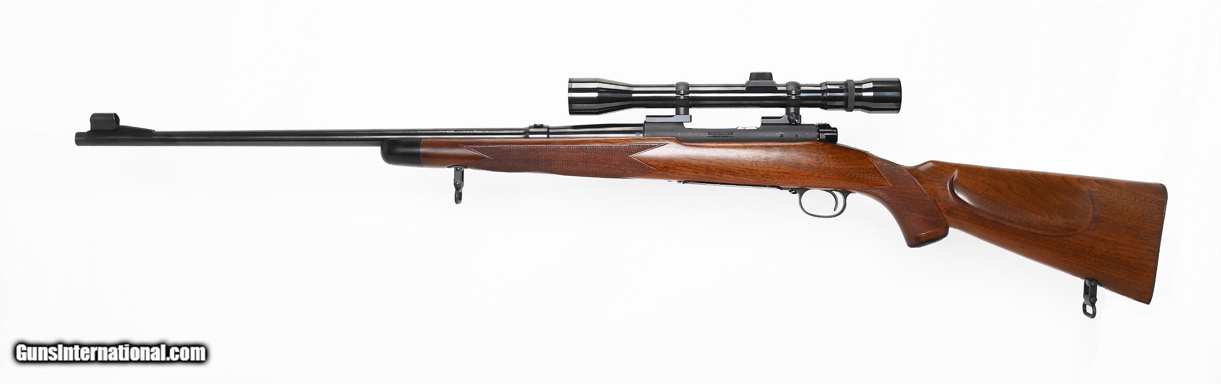 Description: Winchester Model 70 pre-64 Super Grade chambered in .22 Hornet. 1948 manufacture by serial number and by barrel date. Fine example of a very collectible and desirable Super Grade in a great caliber! 97% - 98% original metal finishes with a couple of light scratches by the receiver sight holes. The wood is 98% as well. $7,350.00 SN: 94611 SOLD |