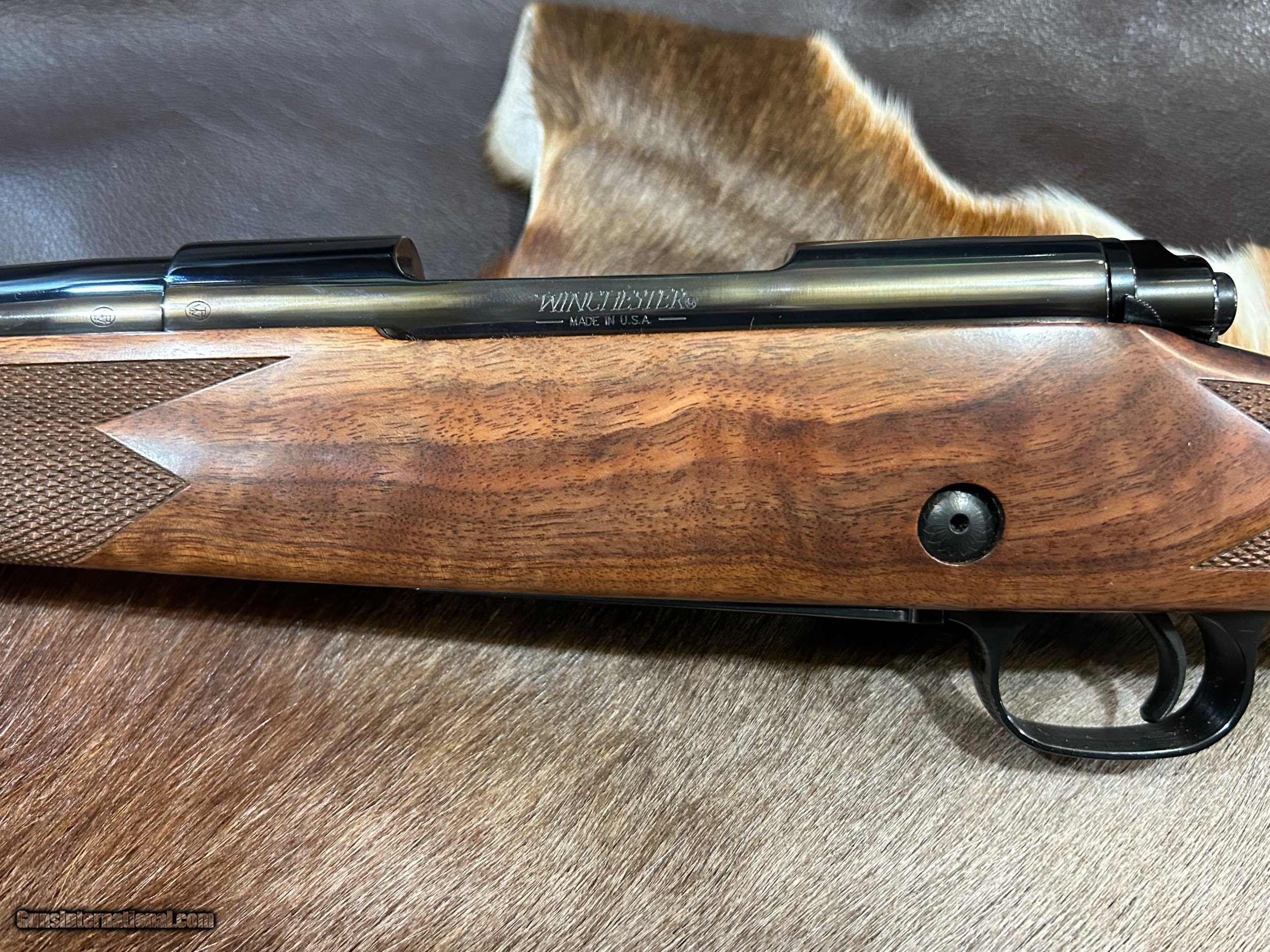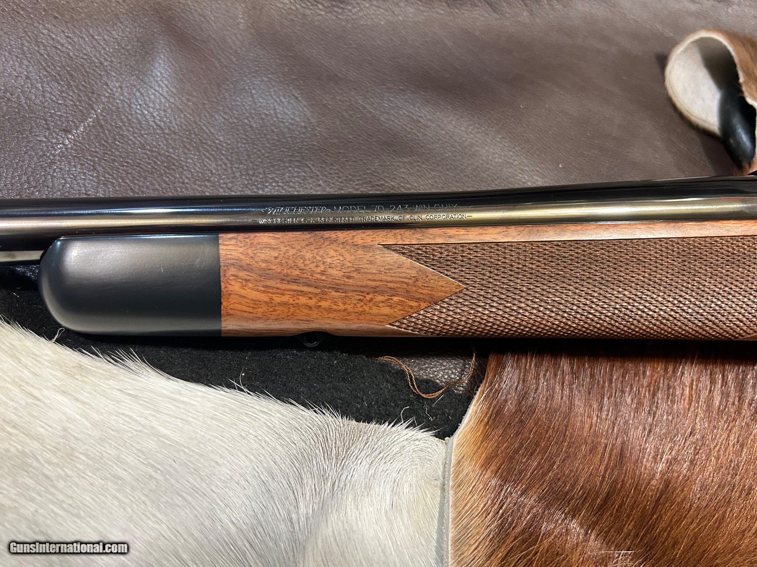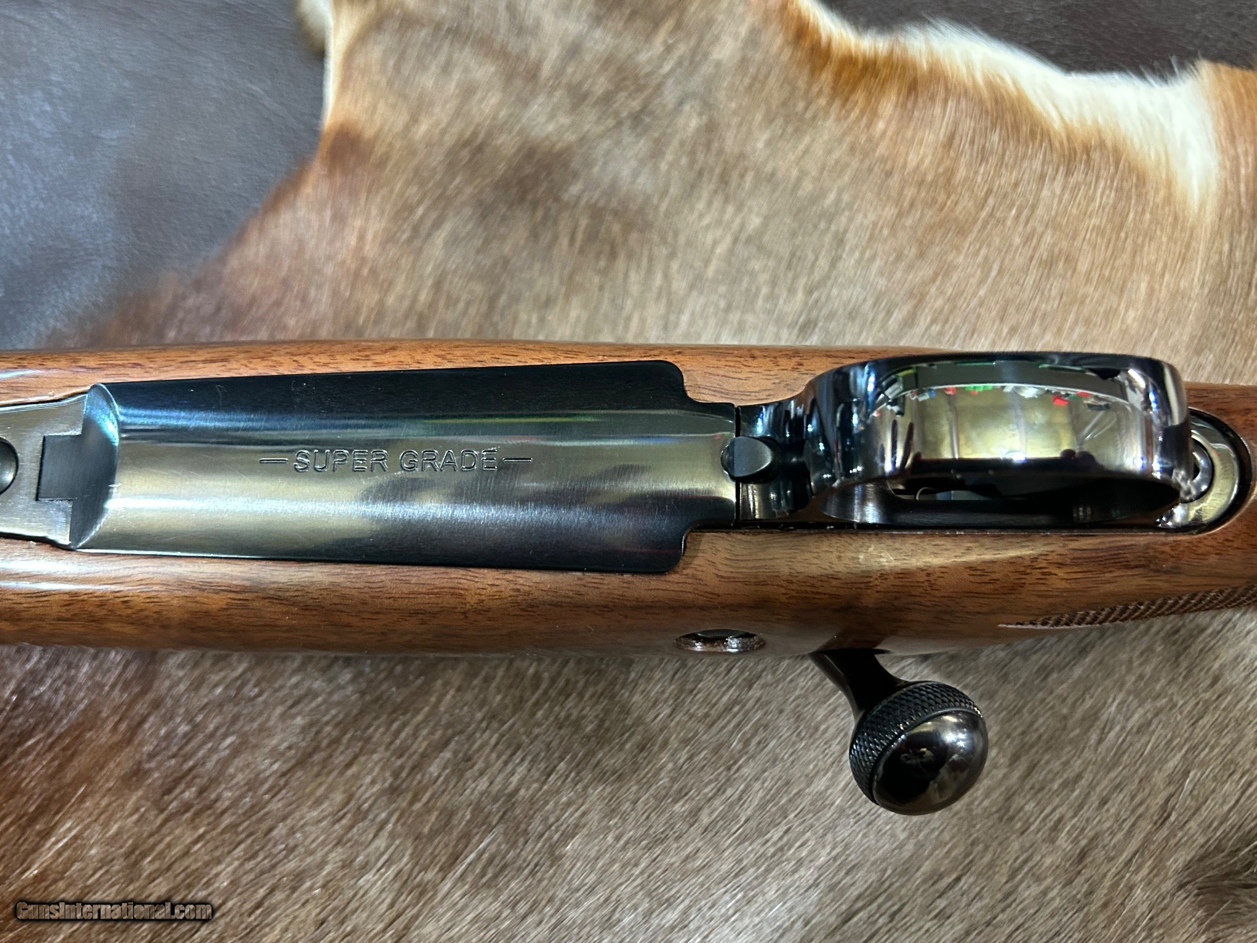 Description: Winchester Model 70 Super Grade. 243 Cal. STUNNING WOOD! Could about pass for new. No box or docs. Control round feed. Has been possibly test fired only, may have had a scope mounted. I used to be a dealer of a fairly large shop; selling some of my extra personal guns. I got this one from an elderly gentleman who used to collect Model 70's, he was a stickler for pretty wood. He said he possibly test fired it but could not recall. Sold me some of his guns when he had a heart attack. No sales to CA, AK or HI. Pay by USPS money order or cashiers check only, MUST ship to an FFL. Will ship from an FFL. Price includes insured shipping. SOLD Rifle Caliber: .243 Winchester Manufacturer: Winchester Model: 70 Barrel Length: 24 Condition: LNNB Metal Condition: 99%+ Wood Condition: 99%+ Bore Condition: 99%+ |