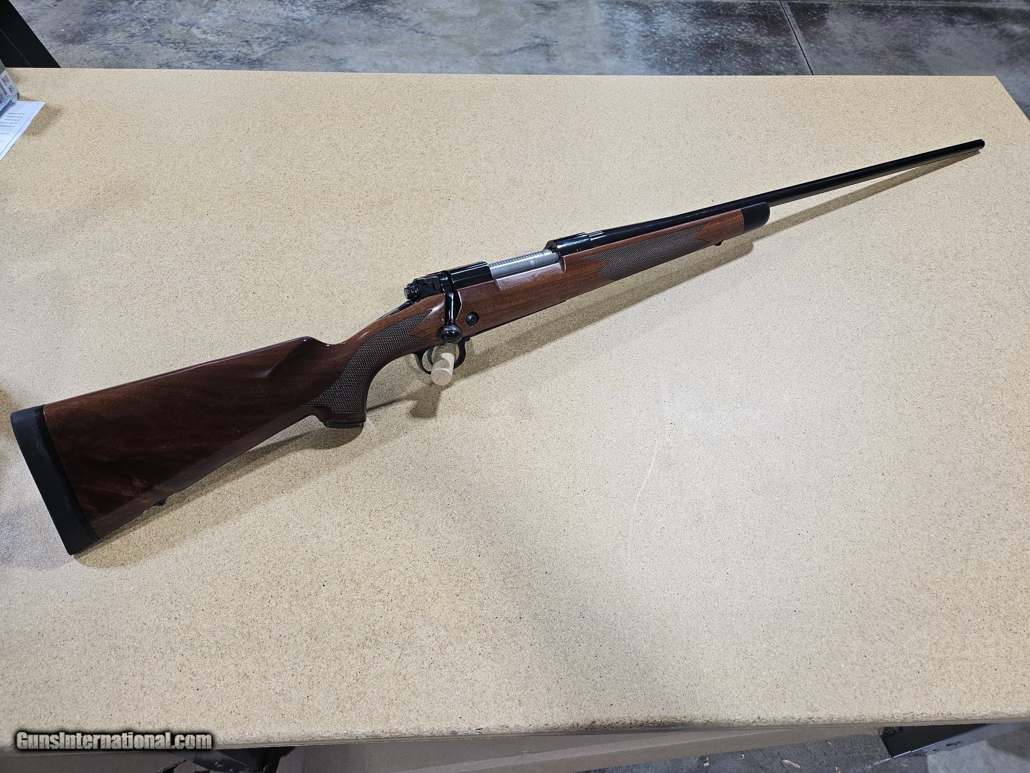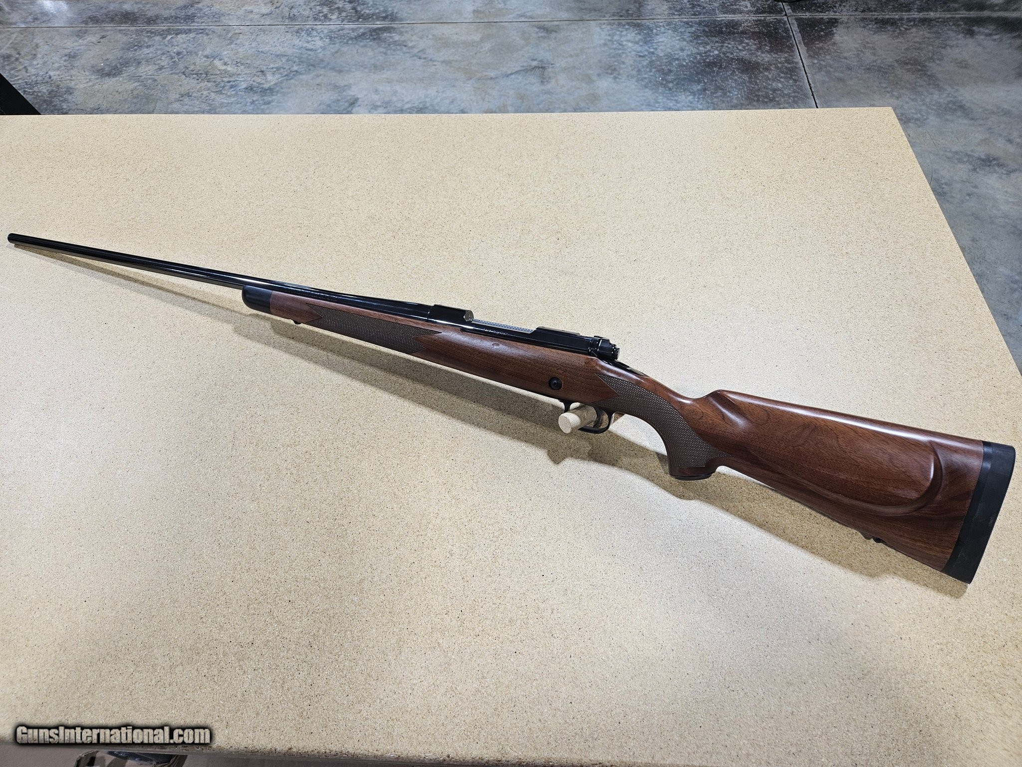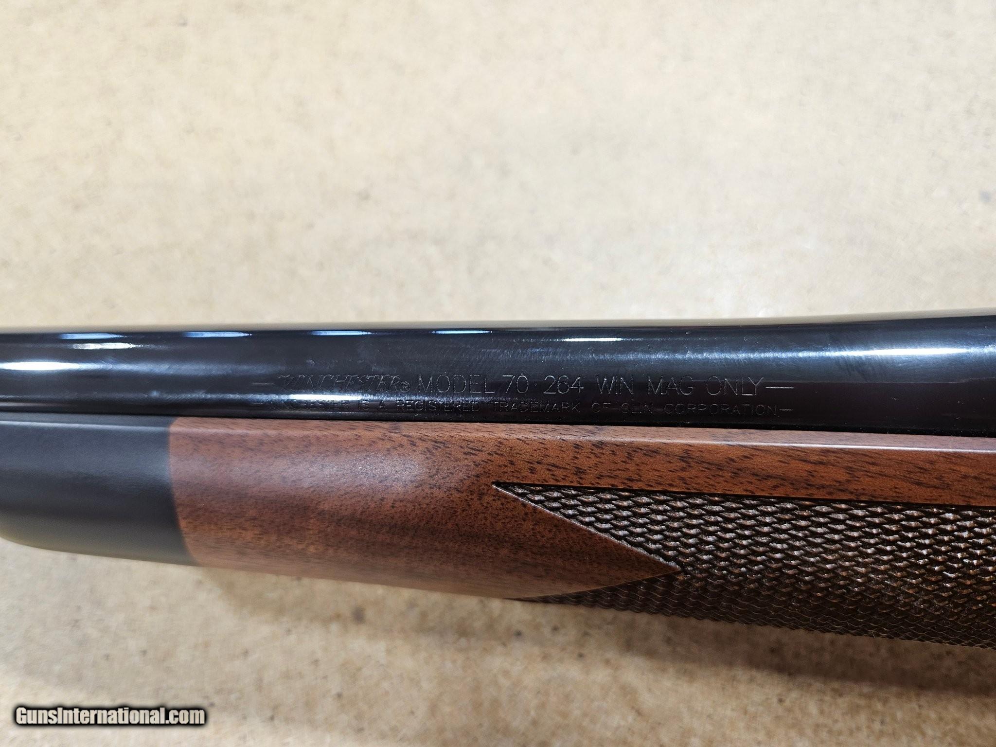 Very nice condition WINCHESTER M70 SUPER GRADE rifle in 264 Winchester Magnum caliber. This Super Grade has the pre-64 controlled round feed and full length extractor., the floorplate has the words super grade imprinted on the bottom side. The walnut stock has very few blemishes and the blueing is excellent.