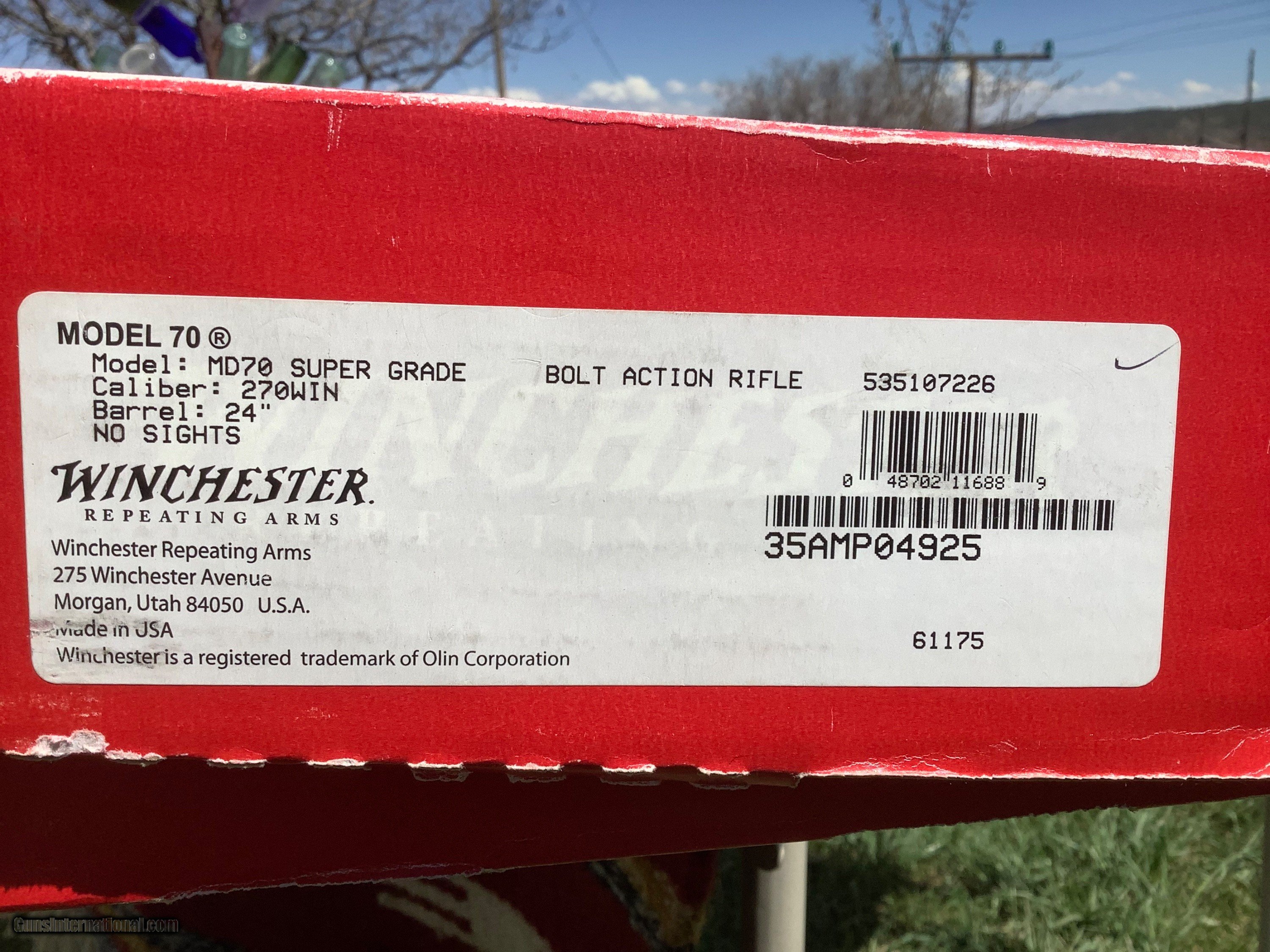 Description: Winchester model 70 super grade classic, 270 winchester, 24 inch barrel, new in the box, never assembled or shot, not a lot to say other than new old stock, I do not know vintage, 1700.00, 75.00 freight, any return freight paid by buyer, personal check, money order, or certified check. SOLD Rifle Caliber: .270 Winchester |