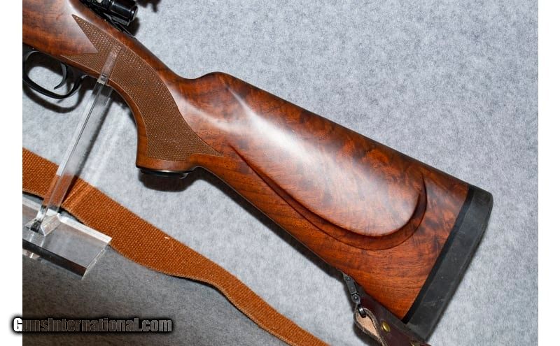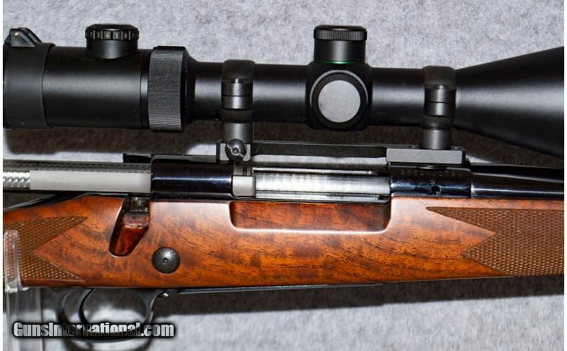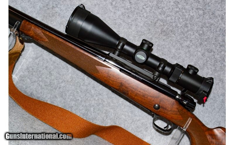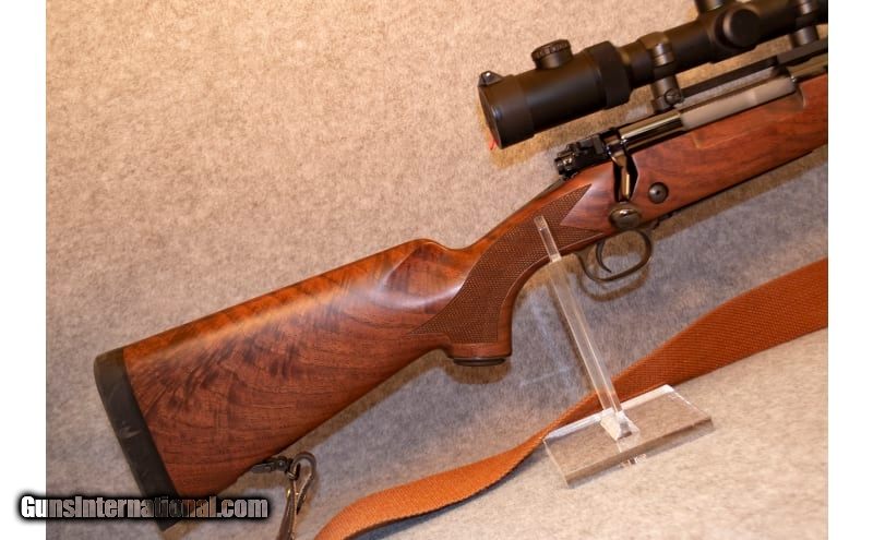 Description: Chambered in .300 Winchester Magnum, this firearm will make a versatile rifle to your collection. This Model 70 Super Grade has a polished blue, sporter-weight, 24-inch barrel and a high grade black walnut stock. The stock has beautiful wood grain, an ebony fore-end tip, a blued-steel pistol grip cap and a shadow-line cheekpiece. The checking is cut at a rate of 20 lines per inch on the grip and the fore-end. The sling is attached to the two inletted sling-swivel studs. The drop at heel and comb are approximately 1/2 inch. A controlled-feed action with the Super Grade's bolt being jeweled. .300 Winchester Magnum SOLD Chambers: 1 Metal Condition: Very Good - Excellent Wood Condition: Very Good - Excellent Bore Condition: Very Good Barrels: 26 Inches Triggers: 13.75-14 LOP Stock Dimensions: Black Walnut satin finished Fore End: Black Walnut satin finished Butt Pad: Pachmayr Weight: 11 Pounds Sights: Weaver 2.5-10 Item Location: Lone Tree, CO |