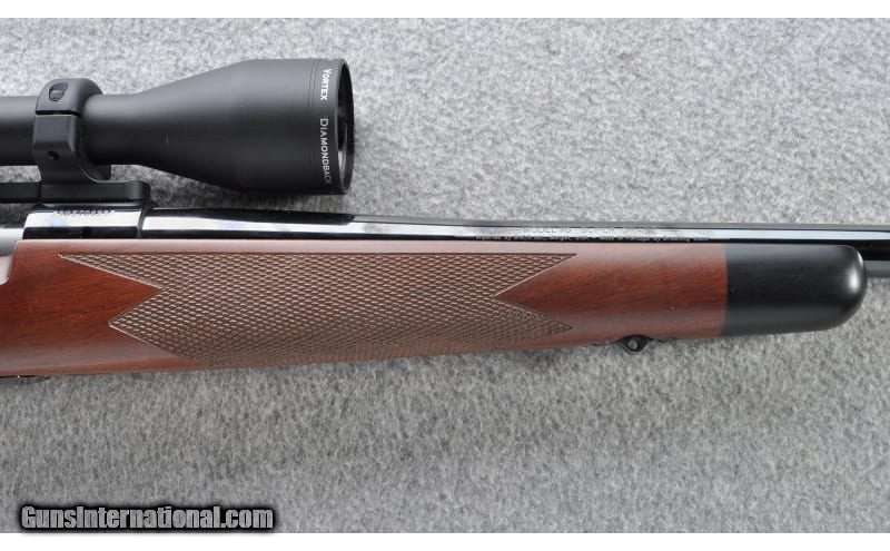 Description: Corporate changes of ownership at Winchester resulted in manufacture of the new Classic Model 70 moving from New Haven, Connecticut, to a Browning/FN factory in Colombia, South Carolina, with the rifles being sold in 2007. The final move occurred in 2013 with the rifles assembled at the Browning/FN plant in Portugal. From that time on the Classic Model 70s have their barrel marked "Imported by BACO, Inc., Morgan, Utah – Made in Portugal by Browning Viana". The quality of these Model 70 'Super Grade' rifles is absolutely beyond reproach. Its highly polished, deeply-blued steel and finely checkered, fancy grain walnut stock with shadowline cheekpiece define the timeless grace and elegance of the Model 70 Super Grade. A one-piece steel bottom metal adds extra rigidity to the Super Grade's stock and action for improved accuracy. The super grade's shadowline cheekpiece is beautifully functional, placing your eye in perfect alignment with the scope. .308 Winchester SOLD Chambers: .308 Winchester in a five round box magazine bolt action rifle Metal Condition: "Very good, shows like new Wood Condition: "Very good, showing a few minor marks Bore Condition: Bright and sharp Barrels: 22 Triggers: MOA trigger system Stock Dimensions: 13 5/8" LOP Fore End: Checkered fancy grade walnut with ebony fore end tip and inletted sling swivel stud Butt Pad: Decelerator by Pachmayr Weight: 9 lbs. Sights: "No sights, fitted with a Vortex Diamondback 4-12x40 scope in DNZ mount Item Location: Grand Junction, CO |