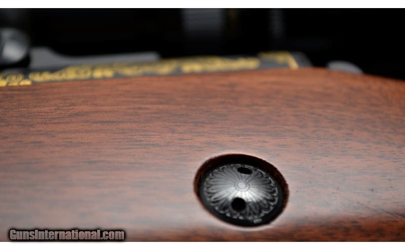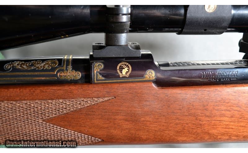 Description: This unique Model 70 is a very well-made premier edition. This is a Rock Mountain Elk Foundation Sponsor Rifle. The R.M.E.F is a conservation and hunting organization founded in Montana in the early 80's. These rifles would be given in a drawing to individuals or companies who would sponsor trips and donate a certain amount to the organization. This rifle is chambered in 338 Winchester Magnum, sporting a 24-inch barrel, this gun is a fine piece ready for your collection. The floor plate has a man on horseback leading two horses, which are carrying his game across the scene. The designs and lettering remain clear and visible, this is marked as 16 of 20 rifles made with this edition. .338 Winchester Magnum SOLD Sights: 3.5x10x40mm Leupold VX-3 Item Location: Lacey, WA |