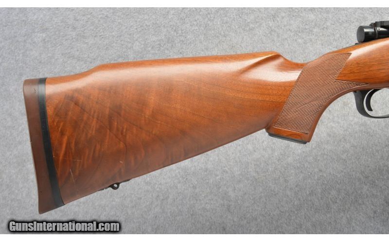 Description: Winchester Model 70 Super Grade in 458 Win Magnum. Late 70s vintage, push feed action. SOLD Caliber Info: 458 Win Mag Metal Condition: Polished blue, couple light scratches on the barrel Wood Condition: Scattered scuffs and scratches Bore Condition: Bright and Sharp Barrels: 22 Inch Stock: Capped pistol grip with Raised Cheek, Checkered Walnut Stock Dimensions: 13 1/4" LOP Butt Pad: Winchester red rubber recoil pad Weight: 8 Lbs 12 Ozs Sights: Dovetailed Rear Sight, Ranped Front Item Location: Buda, TX |