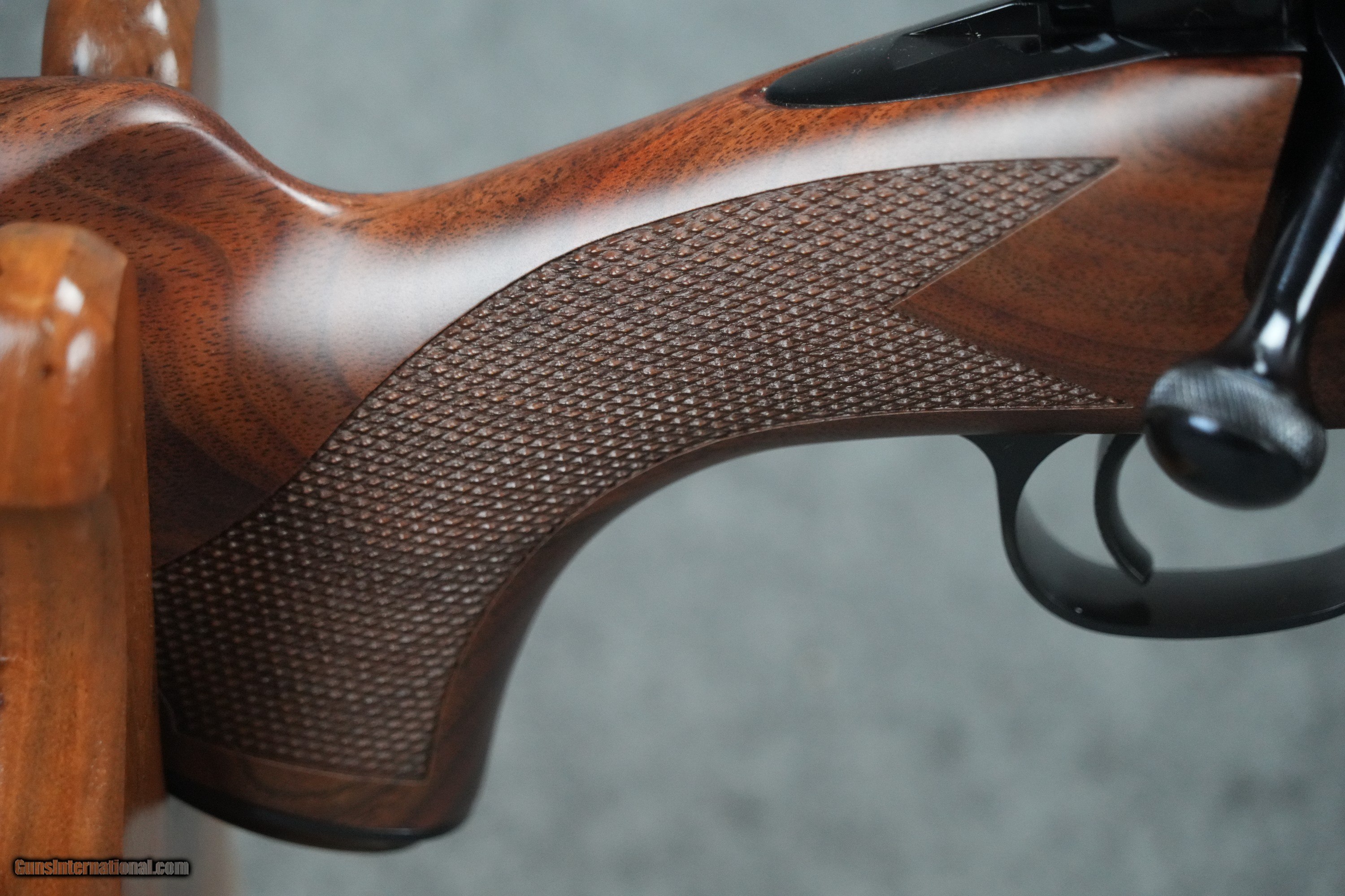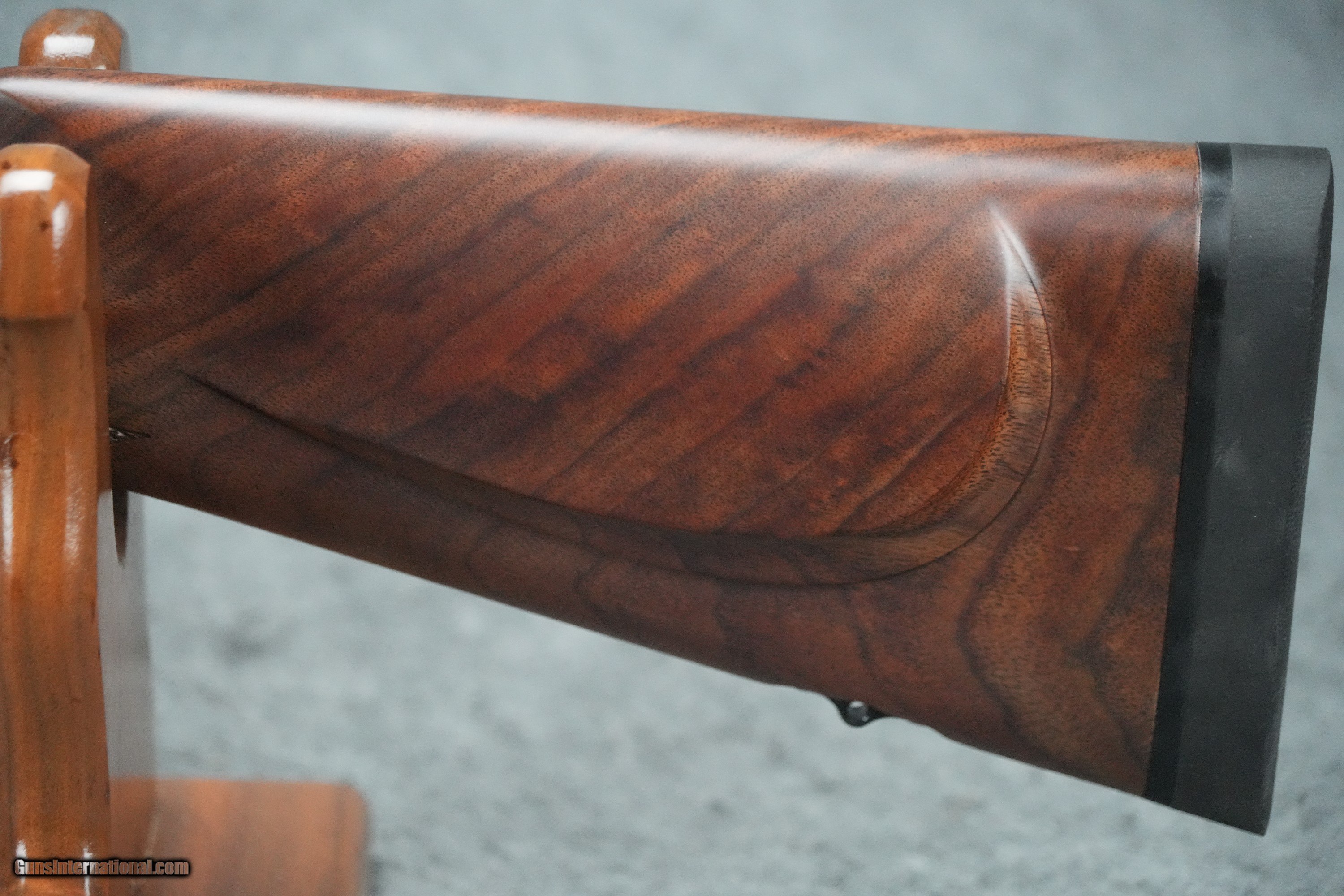 Description: The Super Grade is already on your wish list. Face it, the Super Grade is on most hunter's list. Its highly polished, deeply-blued steel and finely checkered, fancy grain walnut stock with shadowline cheekpiece define the timeless grace and elegance of the Model 70 Super Grade. A one-piece steel bottom metal adds extra rigidity to the Super Grade’s stock and action for improved accuracy. The super grade’s shadowline cheekpiece is beautifully functional, placing your eye in perfect alignment with the scope. Model 70 Super Grade Features Grade V/VI full fancy Walnut stock with shadowline cheekpiece places your eye in perfect alignment with scope Highly polished metal surfaces add style and elegance One-piece bottom metal with steel floorplate adds rigidity for better accuracy Decorative steel crossbolt adds strength, rigidity and a touch of stylish refinement Inletted sling swivel studs allow you to attach your favorite sling Forged steel receiver with integral recoil lug is bedded front and rear to eliminate shifts in zero for exceptional long-range accuracy Action Length Short Action Caliber 6.8 Western Barrel Length 24 Overall Length 44 1/4 Length of Pull 13 3/4 Drop at Comb 1/2 Drop at Heel 1/2 Weight 8 lbs 0 oz Magazine Capacity 3 Twist Rate 8 Barrel Finish High Gloss Stock Finish Satin Wood Grade Grade V/VI Receiver Finish High Gloss Chamber Finish Polished Barrel Material Steel Barrel Contour Sporter Stock Material Black Walnut Recoil Pad Pachmayr Decelerator Pistol Grip Cap Gloss Blued Steel Checkering Cut 20 LPI Sling Swivel Studs Steel Integral Receiver Material Steel Trigger Finish Brushed Polish Bolt Slide Finish Jeweled Magazine Type Hinged Floorplate Trigger Material Stainless Steel Trigger Guard Material Steel Trigger Guard Engraving None Floor Plate Material Steel Drilled and Tapped for Scope Yes SOLD Rifle Caliber: 6.8 Western Manufacturer: Winchester Model: Model 70 Super Grade Barrel Length: 24" Barrel Condition: BRAND NEW |