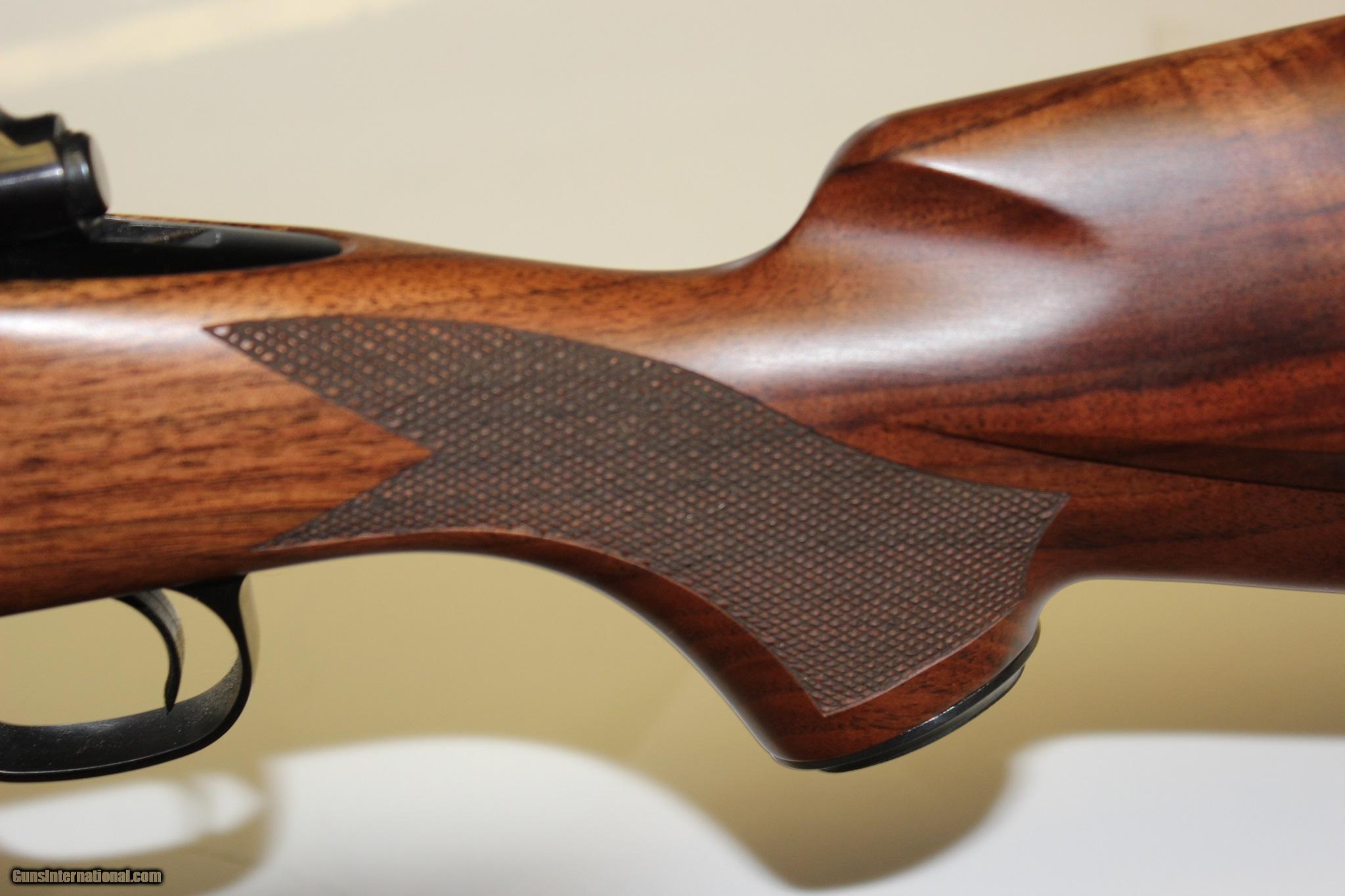 Description: This is new Super Grade in 7mm Rem Mag. One gun owner. Not used at all. The Super Grade is on most hunter's list. Its highly polished, deeply-blued steel and finely checkered, fancy grain walnut stock with shadowline cheekpiece define the timeless grace and elegance of the Model 70 Super Grade. A one-piece steel bottom metal adds extra rigidity to the Super Grade’s stock and action for improved accuracy. The super grade’s shadowline cheekpiece is beautifully functional, placing your eye in perfect alignment with the scope. · GRADE IV / V FULL FANCY WALNUT STOCK WITH SHADOWLINE CHEEKPIECE places your eye in perfect alignment with scope · HIGHLY POLISHED METAL SURFACES add style and elegance · ONE-PIECE BOTTOM METAL WITH STEEL FLOORPLATE adds rigidity for better accuracy · DECORATIVE STEEL CROSSBOLT adds strength, rigidity and a touch of stylish refinement · INLETTED SLING SWIVEL STUDS allow you to attach your favorite sling · FORGED STEEL RECEIVER WITH INTEGRAL RECOIL LUG IS BEDDED FRONT AND REAR to eliminate shifts in zero for exceptional long-range accuracy · PRE-’64 STYLE CONTROLLED ROUND FEED WITH CLAW EXTRACTOR fully controls the cartridge from magazine, to chamber, to ejection · Three-Position Safety shows safety status at a glance · COLD HAMMERFORGED FREE-FLOATED BARREL for years of pinpoint accuracy · RECESSED TARGET CROWN enhances accuracy and protects the rifling · M.O.A. Trigger SYSTEM with zero take-up, zero creep and zero overtravel gives you outstanding accuracy · Blade-Type Ejector for full control of ejection force · PACHMAYR® DECELERATOR® RECOIL PAD for optimal protection against felt recoil SOLD Manufacturer: Winchester Model: Model 70 Super Grade Serial Number: G325901 Caliber Info: 7mm Rem Mag Condition: New Metal Condition: 100% Wood Condition: 100% Bore Condition: 100% Stock: Wood |