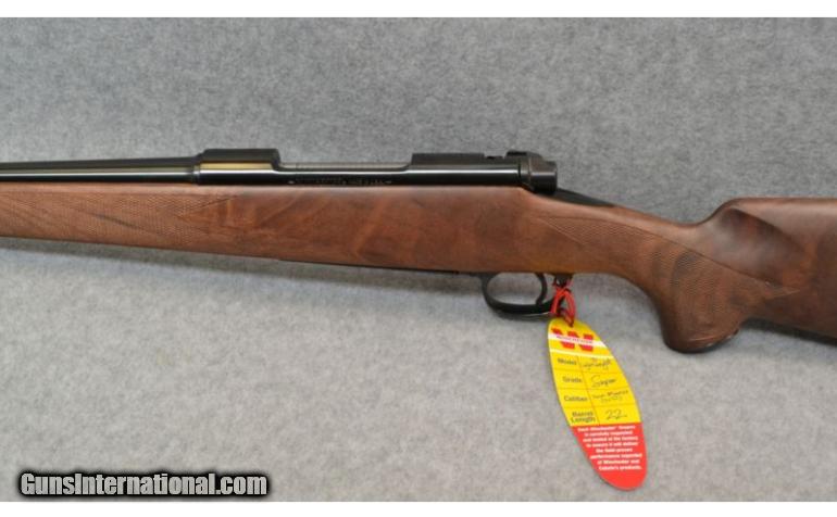 Description: Leading Winchester's Model 70 line is the elegant Super Grade. This rifle features a satin finished fancy grade walnut stock with finely cut checkering, contrasting black ebony fore-end tip, pistol grip cap and inletted blued steel swivel studs. The bolt is jeweled and has the Pre-'64 style controlled round feeding claw extractor. The magazine floorplate has a scroll engraved Cabela's logo and "Limited Edition" inscription. This rifle is a Cabela's exclusive, limited edition which is brand new and includes a 1961 style Winchester box, hang-tag and manual. SOLD Caliber Info: 7x57 Mauser Metal Condition: As new Wood Condition: As new Bore Condition: As new Barrels: 22" High polish blue Stock: Highly figured checkered, satin finish walnut Stock Dimensions: 13 3/4" LOP Fore End: Ebony fore end Butt Pad: Pachmayr Decellerator recoil pad Weight: 7 lbs 14 oz Sights: Drilled and tapped for scope bases Item Location: Thornton, CO |