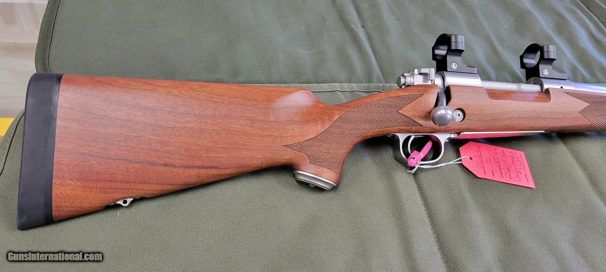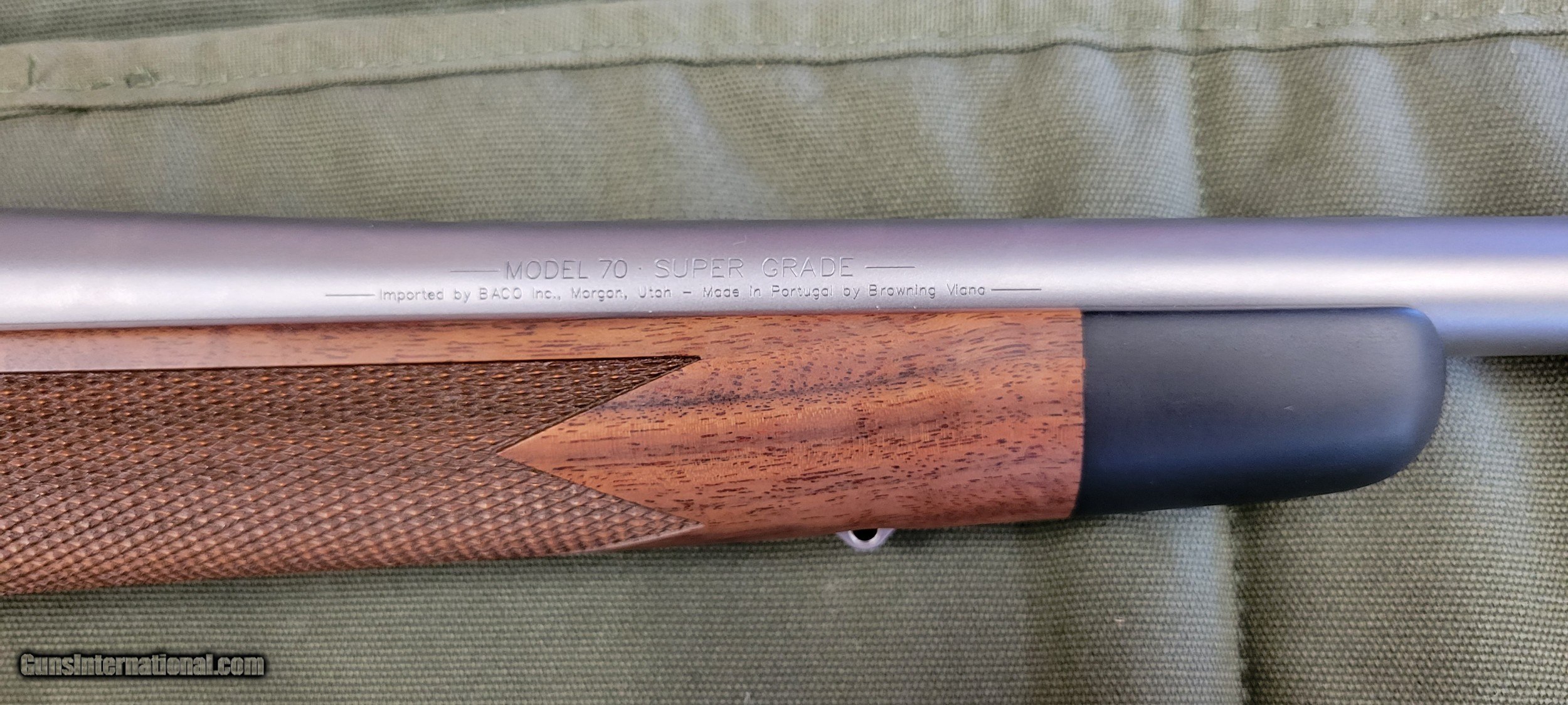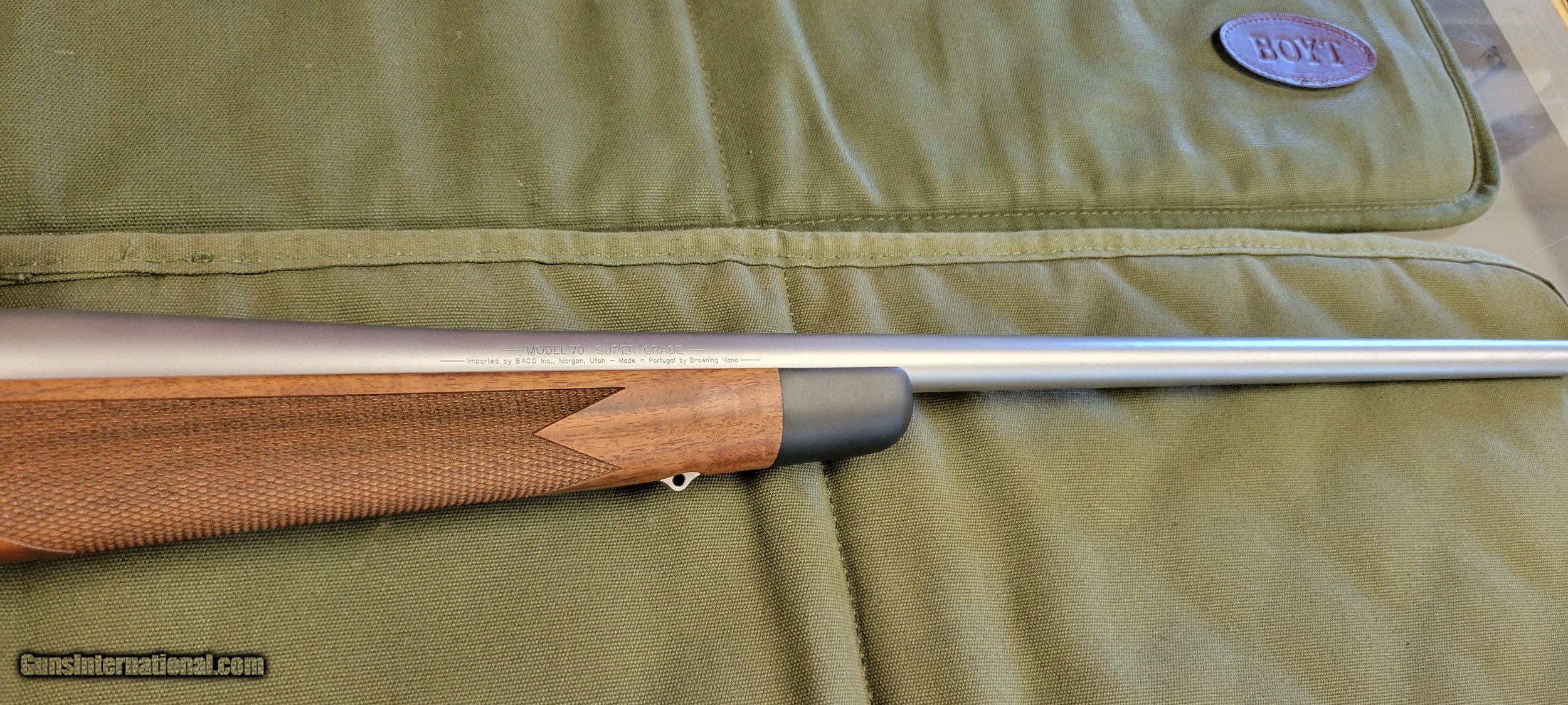 Description: This rifle is as new without the box. Controlled round feed Mauser style extractor. This is a HANDSOME rifle. Barrel length is 24". Please call or email with any questions. WE TAKE CREDIT CARDS, DEBIT CARDS, MONEY ORDERS, CASHIER CHECKS, OR EVEN PERSONAL CHECKS.........AS LONG AS THEY'RE GOOD! 3% will be added to all charge cards. GUNS WILL BE HELD UNTIL PERSONAL CHECKS CLEAR. GUNS SUBJECT TO PRIOR SALE. There is a $40 shipping charge per gun and is NOT refundable. Insurance may be extra. Thank you, Darryl Howard SOLD |