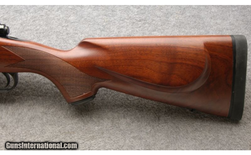Description: This US made Winchester Model 70 Super Grade is like new. The blue is bright and shiny and the very nice walnut stock is free from blemishes. SOLD Caliber Info: .270 WSM. Chambers: Bolt action repeater. Metal Condition: As new. Wood Condition: As new. Bore Condition: As new. Barrels: 24 inch round gloss blue. Triggers: Single blue. Stock: Very nice high grade walnut with a checkered pistol grip, cheek piece, super grade sling mounts, black forearm tip and a grip cap. Stock Dimensions: 13 1/2 Inch LOP. Fore End: Matching checkered walnut with a black forearm tip. Butt Pad: Black rubber butt pad. Weight: 8 Lbs 2 Oz. Sights: Drilled and tapped for scope bases. Item Location: Owatonna, MN |
