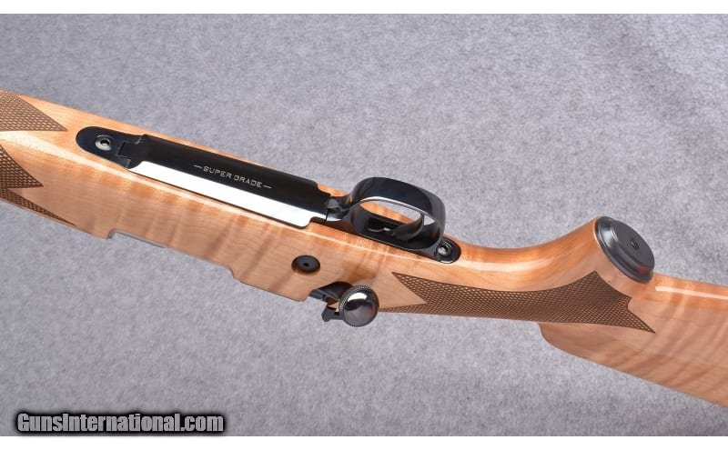 Description: Excellent pre-owned Model 70 Super Grade in 308 Winchester. Browning Viana production rifle features Pre-'64 style controlled round feed with claw extractor, Jeweled bolt, AAAA Maple stock with ebony tip and shadowline cheekpiece. Factory tested and serviced, includes box and manual. .308 Winchester SOLD Metal Condition: High Polished Blue Wood Condition: High Gloss Maple Stock Bore Condition: Bright Sharp Barrels: 22 Inch Tapered Stock Dimensions: 13 3/4" LOP Butt Pad: Decelerator Recoil Pad Weight: 7 lbs. 13 oz. Sights: "No Sights , Tapped For Scope Item Location: Buda, TX |