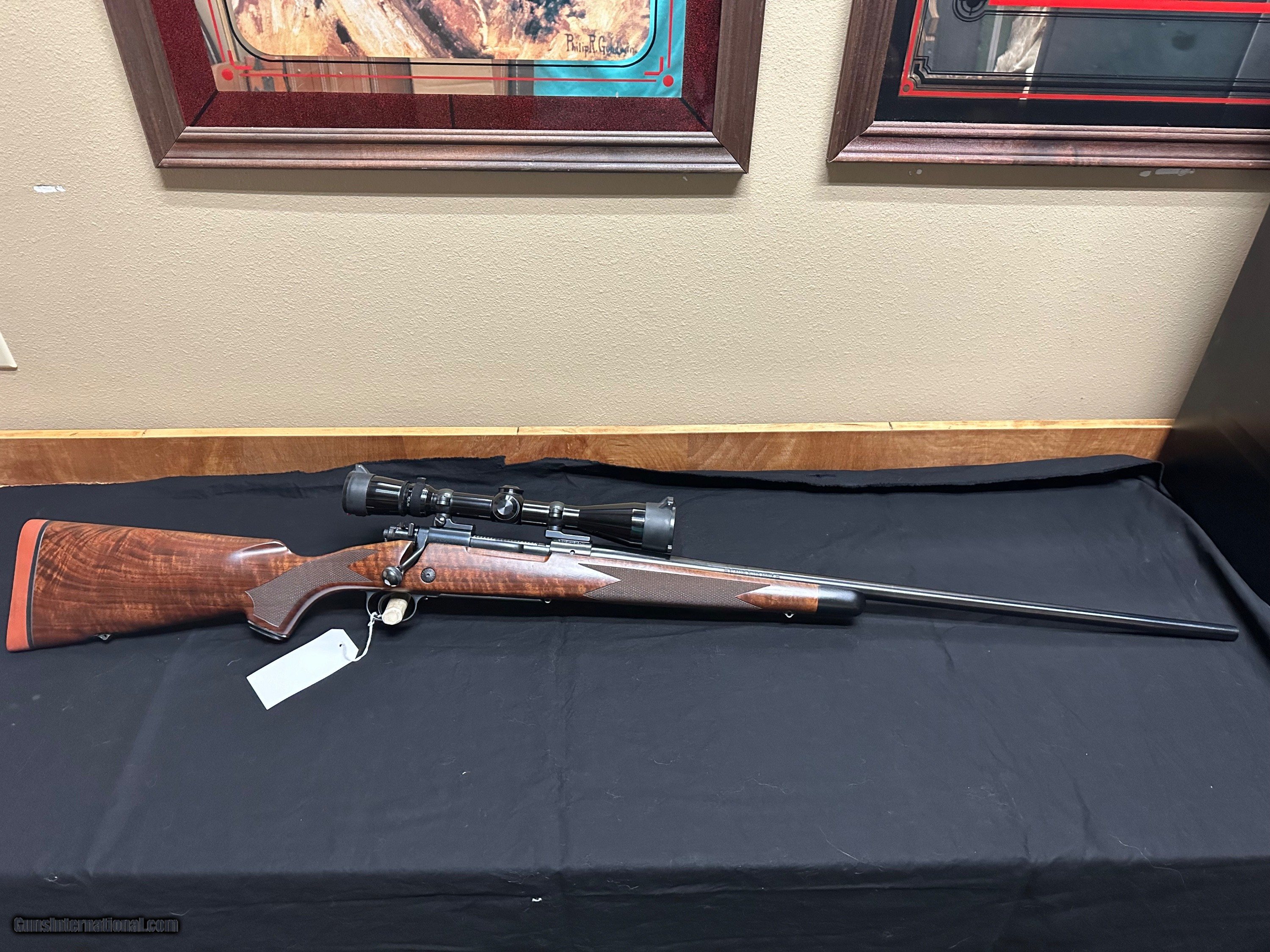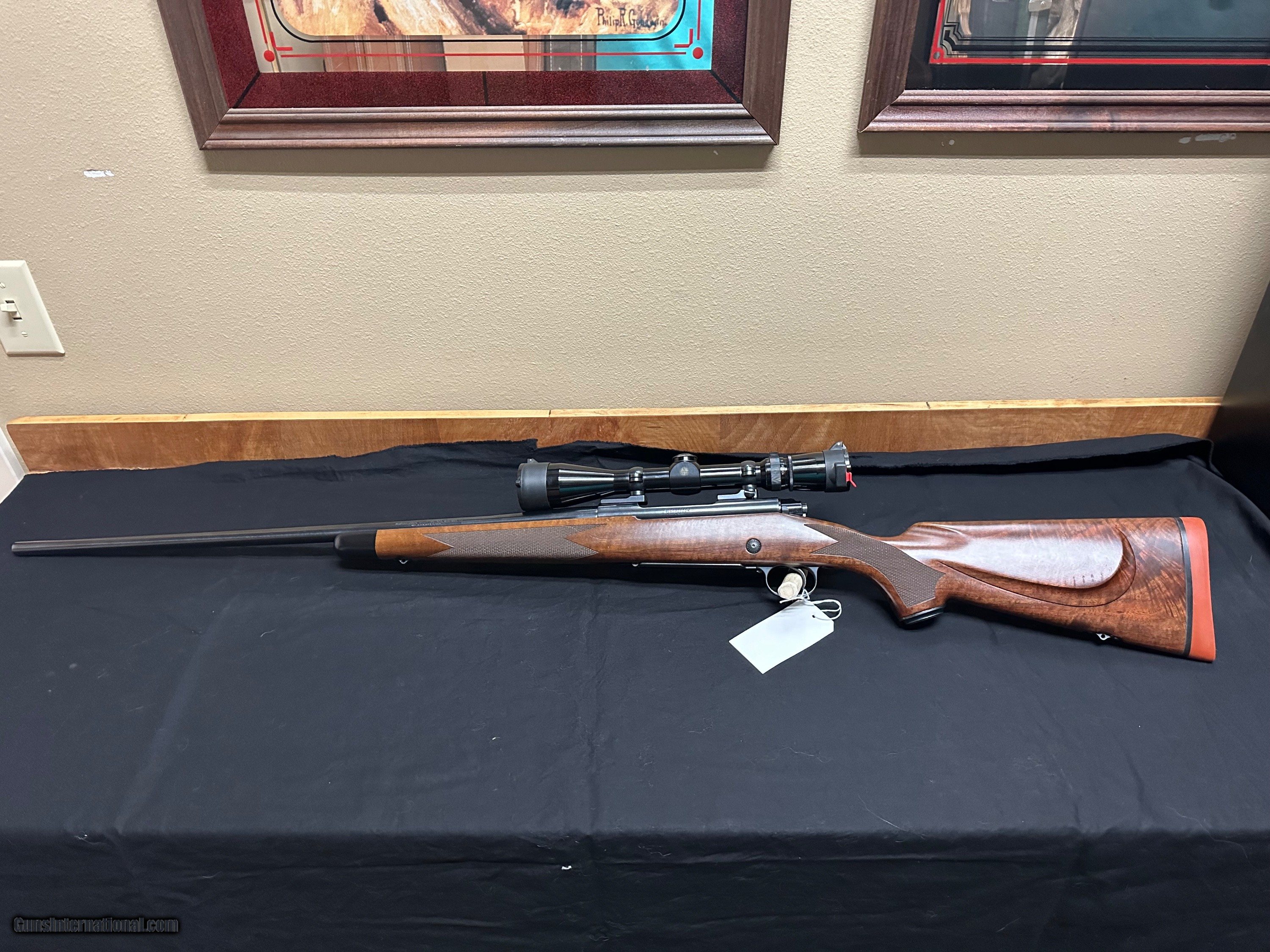 Description: Winchester Model 70 Super grade .300 Winchester magnum. Includes leupold Vx-III 3.5x10 1" scope high gloss with scope box. Beautiful figure in wood. All factory and original. Winchester recoil pad. Control round feed action. 26" barrel without sights. Manufactured in early 90's. Pre-owned with a couple handling dings. Has been shot minimal times. Sharp checkering. No blue wear. Includes paperwork and manuals. No gun box. For more information about this firearm or for purchasing it we kindly ask that you ((( PLEASE GIVE US A CALL AT ))) 1-(479)-747-9598. We have a store front and emails may be delayed so we kindly ask that you just give us a call over the phone. PRICE - $2,300 + Shipping SOLD Rifle Caliber: .300 Winchester Magnum Manufacturer: Winchester Model: 70 Super Grade Serial Number: G154687 Barrel Length: 26” Action: Control Round Feed Extras: Paperwork and manual w/ Scope box Item Location: Arkansas |