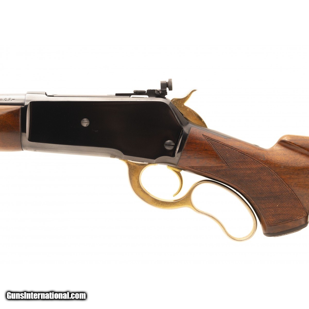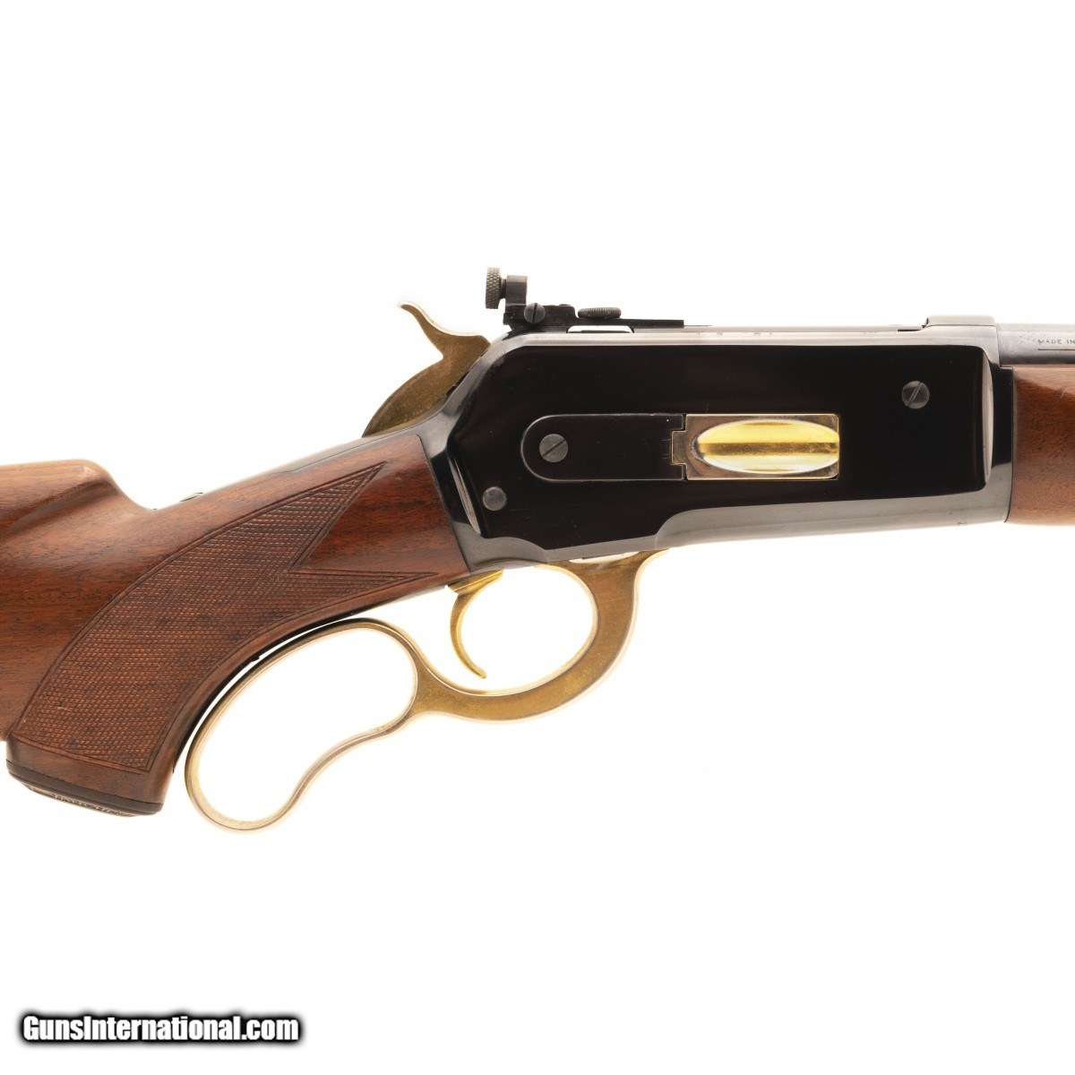 Description: " Deluxe model made in 1942 with checkered stock and long tang. The lever, butt plate and other small parts have been gold plated, the remaining blued parts are original and have approximately 95% coverage. Bore is excellent. Very good overall condition. A great looking deluxe model. SOLD Curio/Relic: Yes |