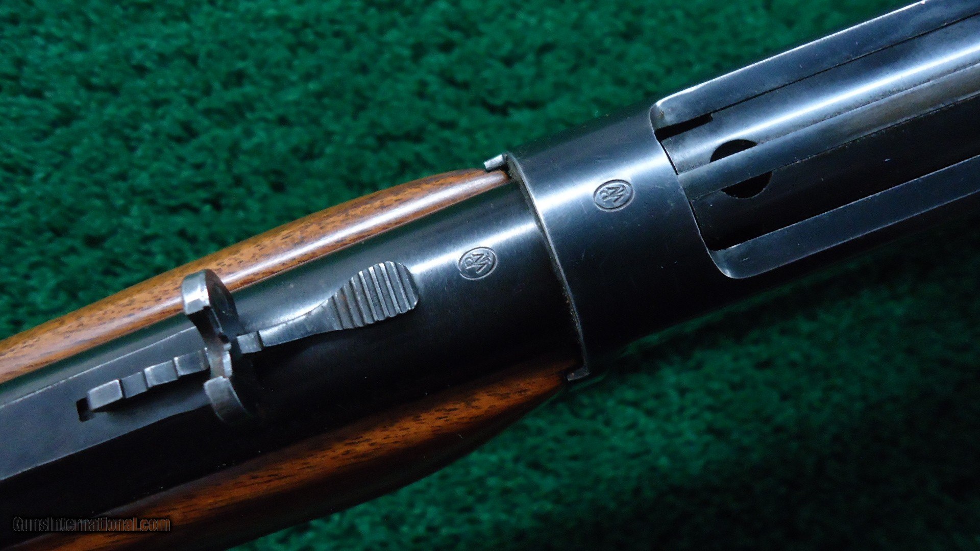 Description: 24 inch round barrel chambered in 348 WCF caliber with 1/2 length mag tube and checkered steel shotgun butt. Sights include hooded ramp front with a sporting rear sight and Lyman 56 receiver sight. Excellent bright shiny bore. Crisp action. Metal retains most all of the original blue. Checkered pistolgrip stock and forearm are in good refinished condition with a chip out on the left side lower tang near frame. Complete with a period leather sling and quick detach swivels. Should make for a good hunting rifle that was made in 1949. Leroy Merz Antique Firearms specializes in antique and vintage Winchesters and other fine American firearms. Since 1965 Mr. Merz has taken part in the world of firearms and has been a contributor to many well known reference books. We have hundreds of additional guns in every price range at our home online. Search for Merz Antiques in google. SOLD Curio/Relic: Yes Rifle Caliber: .348 Winchester |