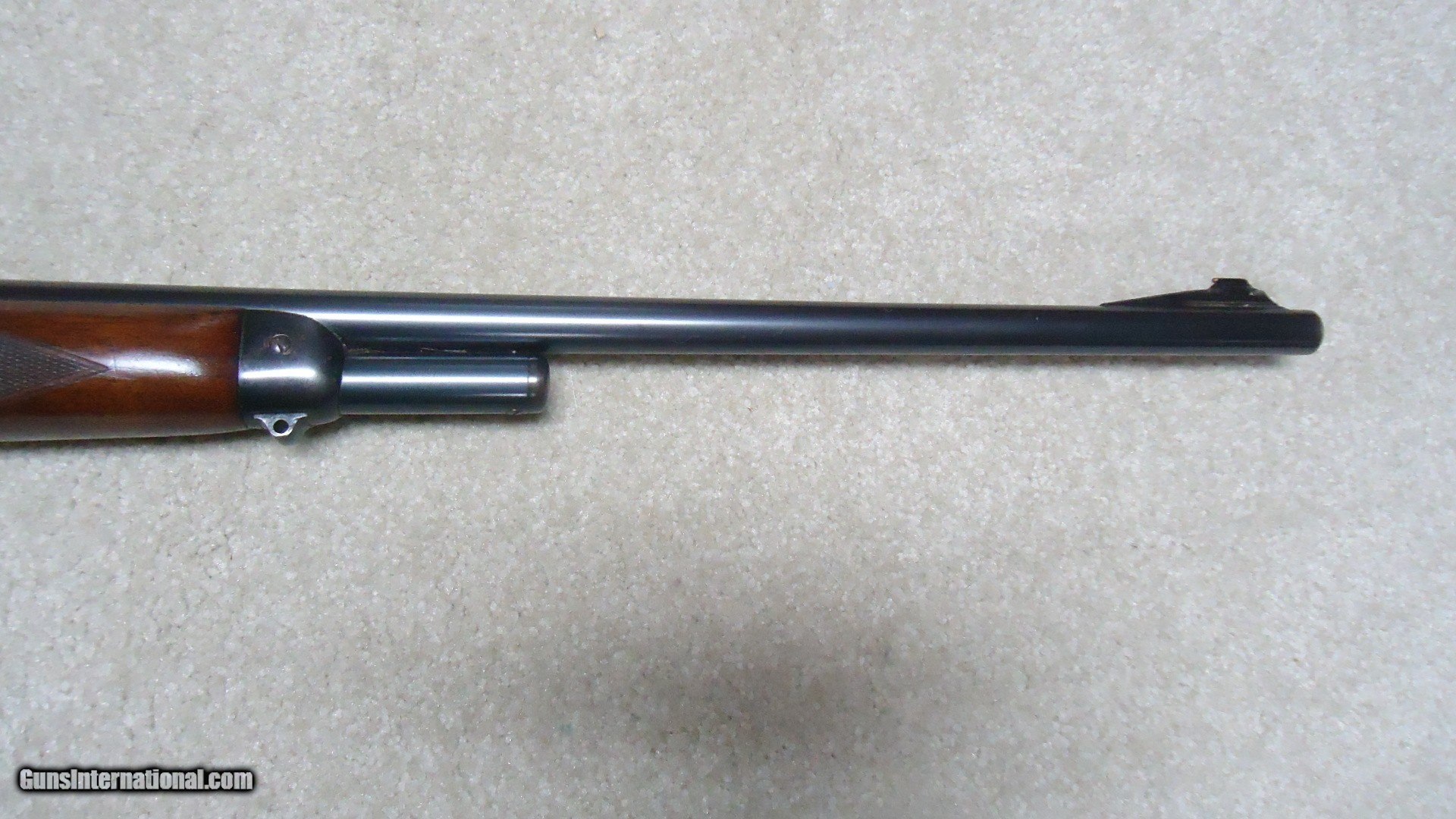 Description: PRE-WAR MODEL 71 DELUXE .348 WCF 24" RIFLE, #20XXX, MADE 1941. A really sharp example that retains about all the receiver blue including the upper tang. The lever only is showing some brown mixing with the blue. Fine deep blue on the barrel and magazine with the forend cap showing a touch of wear. Standard buckhorn rear sight, exc. markings, exc. tight action, minty bore, excellent unaltered stock and forend with sharp checkering and showing the lightest of handling. Great Pre-War Winchester quality inside and out. SOLD Curio/Relic: Yes Rifle Caliber: .348 Winchester Manufacturer: WINCHESTER Model: MODEL 71 DELUXE Serial Number: 20XXX Barrel Length: 24 Condition: EXCELLENT Bore Condition: EXCELLENT |