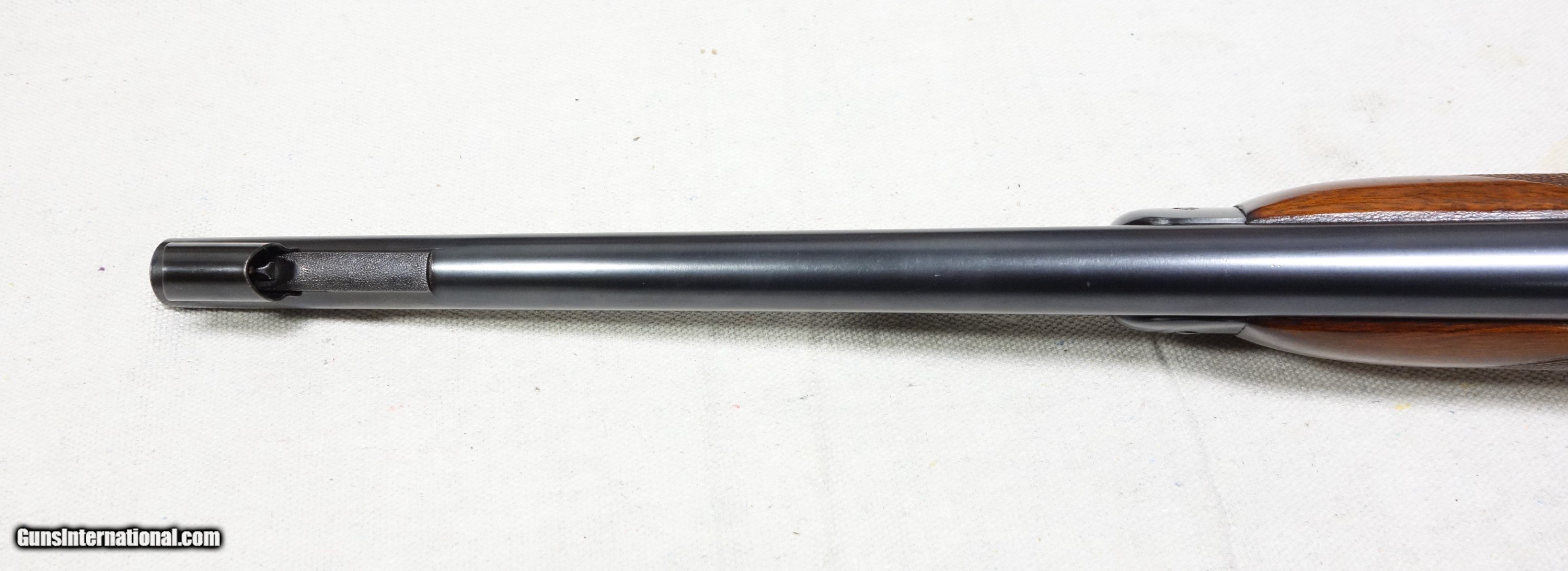 Description: ***SOLD*** Excellent and very rare Pre War Winchester Model 71 Deluxe CARBINE in powerful .348 Win. caliber. S/N 10978 made in 1937. 20" tapered barrel with an excellent bore. Positively integral and genuine front sight ramp. 97% Blue and Varnish. Long tang, Factory bolt peep sight with Lyman 12S filler in barrel dovetail, original robust 1" detachable swivels. Beautiful Deluxe wood set with fine checkering and some scattered light handling marks on left buttstock. Mechanical functions are smooth and crisp. Please add $100 for expedited and fully insured shipping from Alaska in a custom cut, foam lined box for added protection. SOLD Curio/Relic: Yes |