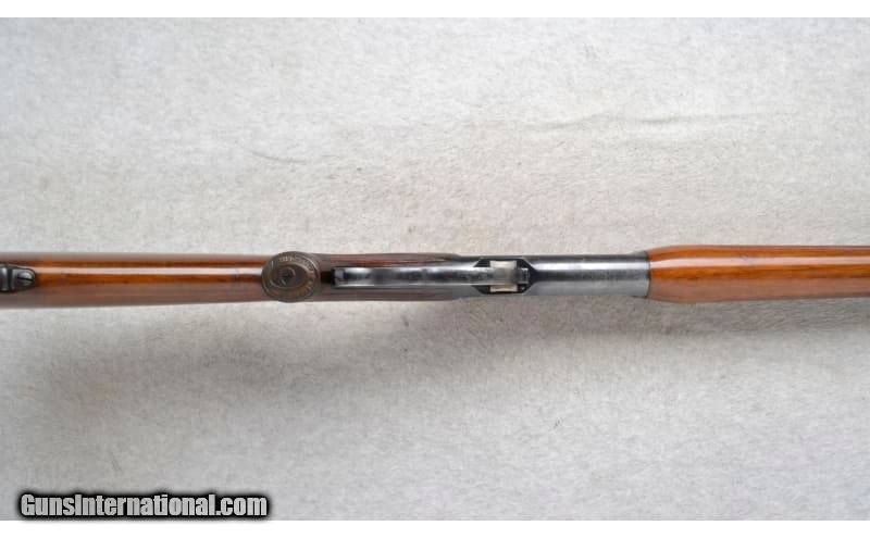 Description: This Winchester Model 71 is a right hand lever action repeating rifle in .348 WCF Cal. It has a 24 inch barrel. A hooded front blade sight and a peep rear sight. The butt stock is a checkered grip walnut pistol grip with a Winchester cap and checkered steel butt plate. The forearm is a checkered grip walnut with a steel cap. Serial number 1751 (1936). .348 Winchester SOLD Curio/Relic: Yes Chambers: Tube Magazine. Metal Condition: "Good. Shows a little wear, handling marks and freckling. Wood Condition: Good. Light handling marks. Bore Condition: Very Good. Barrels: 24 inch. Stock Dimensions: LOP 13 inches. Fore End: Checkered grip walnut with a steel cap. Butt Pad: Checkered steel plate. Weight: 8 lb. 8 Oz. Sights: Hooded front blade. Peep sight rear. Item Location: Richfield, WI |