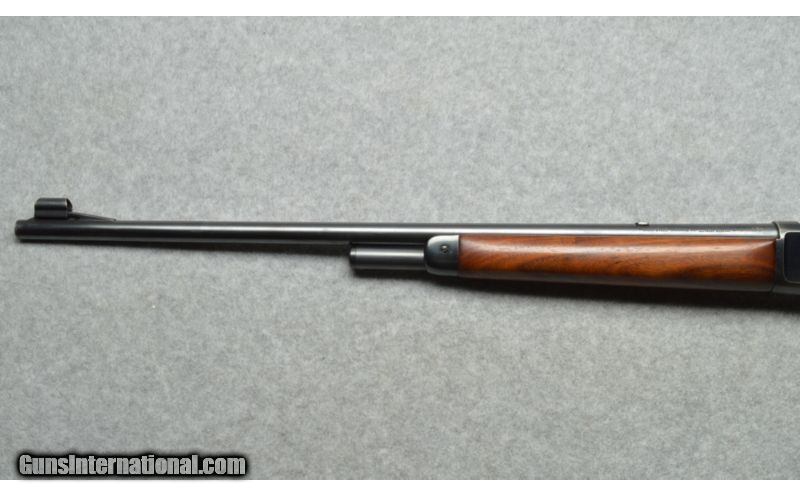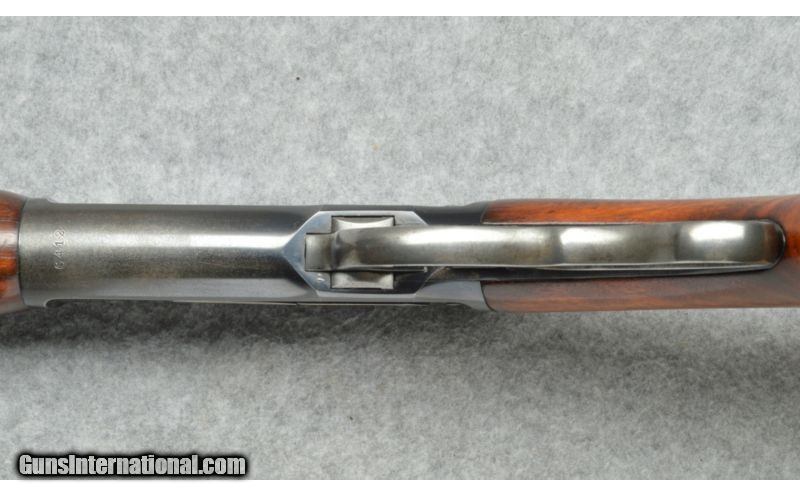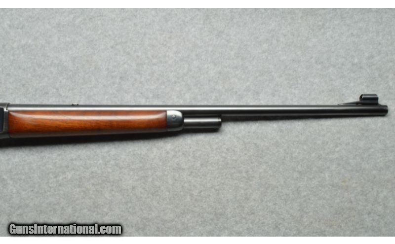 Description: SOLD Manufacturer: 1936 manufacture date. Caliber Info: .348 Win. Chambers: Lever action, four round tubular magazine. Metal Condition: Very good overall, bluing on lower receiver and lever has some fading from carry Wood Condition: Excellent, semi gloss finish. No nicks or scratches. Bore Condition: Excellent, clean shiny, well defined sharp lands. Barrels: 24 inch round blue barrel. Triggers: Single stage trigger, half cocked safety. Stock: Smooth walnut pistol grip stock. Stock Dimensions: 13 1/4 inch length of pull. Fore End: Smooth walnut fore-end matching the stock. Butt Pad: Checkered steel butt plate. Weight: 8 pounds. Sights: Hooded blade front sight with rear bolt mounted peep sight., sight blank on rear of barrel Item Location: Short Pump, VA |