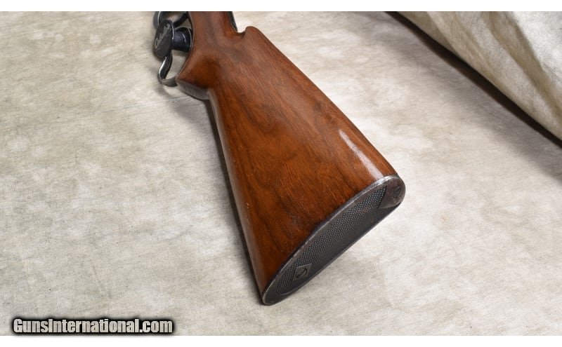 Description: Manufactured in 1949, this Model 71 features good blue, good wood, a half-length magazine, and peep sight. .348 Winchester SOLD Curio/Relic: Yes Chambers: 4+ Metal Condition: "Very good. There is a little wear at the muzzle, and a couple small patches of rust on the lever. Wood Condition: Very good. A few handling marks. Bore Condition: Bright and shiny. The rifling is a bit thin but usable. Barrels: 24 inch Triggers: Factory trigger. Stock Dimensions: 13-3/8 LOP. Fore End: Well-matched walnut. Butt Pad: Steel plate. Weight: 8 lb - 1 oz Sights: White bead and peep "iron" sights. Item Location: Rogers |