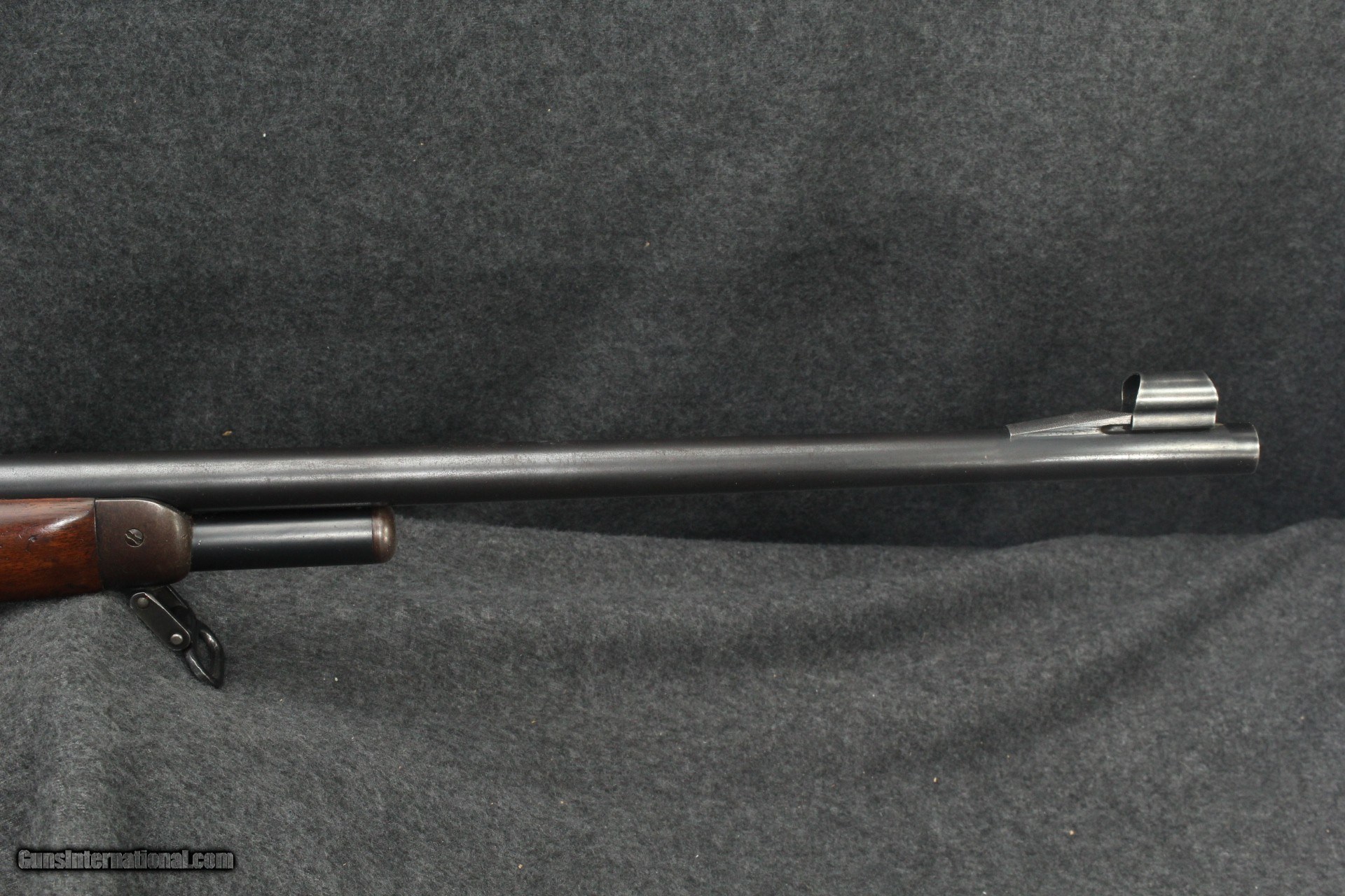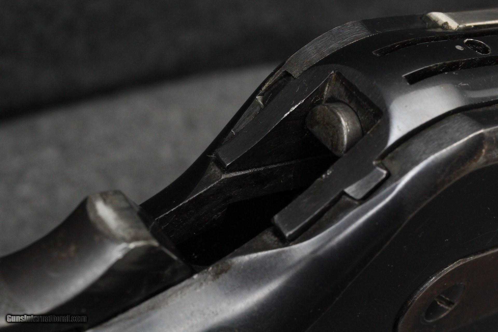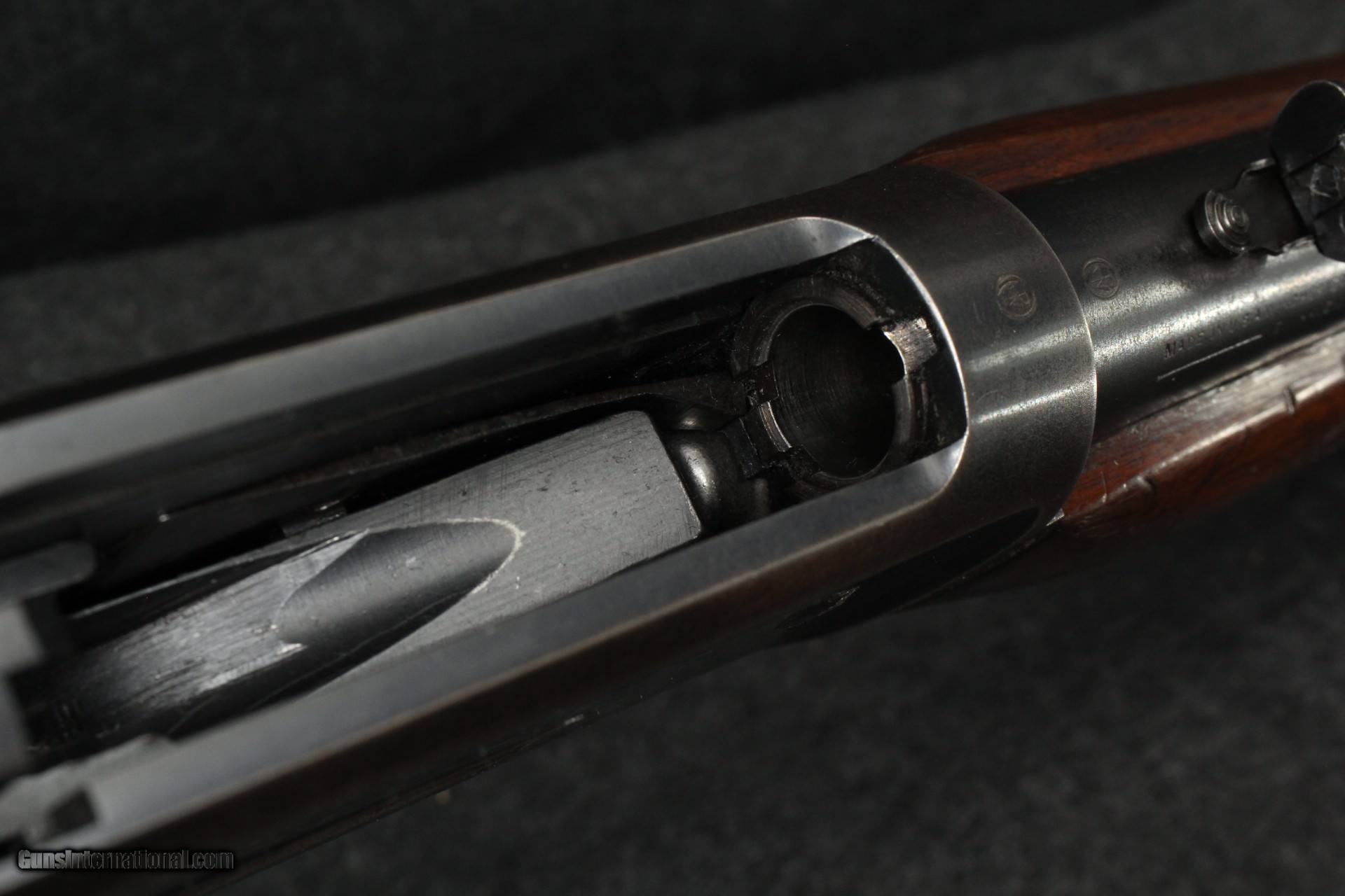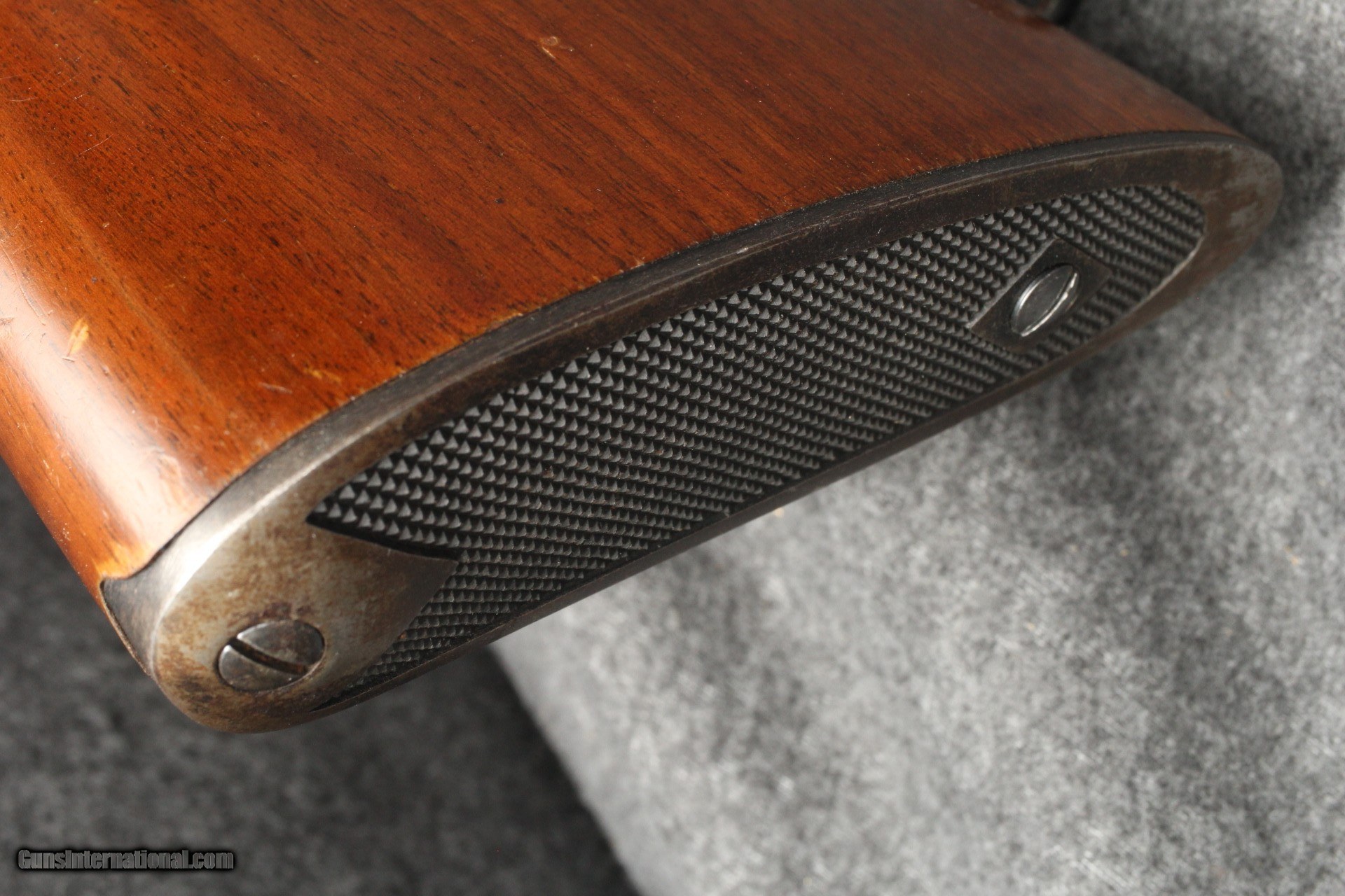Description: 348 Win, serial number 90XX. Mfg 1937. Pre-war, long tang deluxe. Bore is excellent. Missing bolt peep sight. Metal is very good, shows pin-point freckling on barrel and receiver. Blue wear on sharp edges. Wood shows hunting use, marring, not abused. Checkering shows wear, no cracks in stock or forend. Forend shows carry wear. Correct, original Winchester super grade sling swivels. Mechanically sound. More photos on request. Please contact us for shipping and insurance. Will ship to C&R. SOLD Curio/Relic: Yes Rifle Caliber: .348 Winchester |