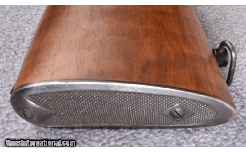 Description: Wood shows an older refinish with sling studs added. Original blue shows a few light scuffs. Bore remains bright and excellent. SOLD Manufacturer: S/N 43XXX Caliber Info: .348 Win. Metal Condition: Very Good Wood Condition: Very Good - Refinished Bore Condition: Excellent Barrels: 24 Triggers: Original Stock: Uncheckered Walnut - Refinished Stock Dimensions: 13 1/4" LOP Fore End: Uncheckered Walnut Butt Pad: Checkered Steel Weight: 8 1/2 LB Sights: Hooded Bead Front - Rear Sight Removed Item Location: Wheeling, WV |