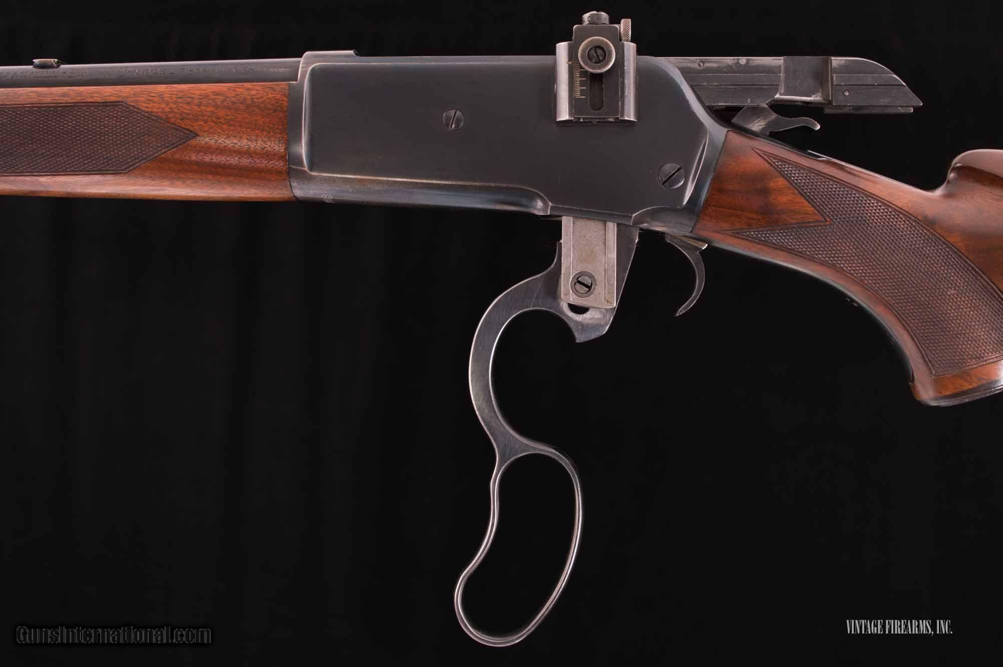 Description: Winchester Model 71 .348 Rifle .348 WINCHESTER DELUXE RIFLE, 99% FACTORY FINISHES, FACTORY PEEP! General Specs: Winchester, Year 1950, .348 WCF, 8lbs 5oz, Lever action rifle Serial Number: 28146 Here we have an unmolested Winchester Model 71 Deluxe Rifle, complete with the factory sling swivels, Lyman #56 factory peep sight, 99% factory blue on the barrel, 98% factory blue on the receiver, 97% factory blue on the lever, 95% factory blue on loading gate, and 99.5% wood NOT RESTORED, near perfect factory checkering and wood finish. The factory Deluxe wood on this ’71 is nicely figured with fiddleback, much nicer than most. The Model 71 was basically a continuation of the Model 1886, with the same action, but the addition of the pistol grip butt stock and beavertail style forend. Manufactured from 1935 until 1958, the Model 71 was produced in .348 Winchester caliber only. There were few Deluxe Rifles made, and this one, serial number 28146 made in 1950, is a great example of a 71 Deluxe as it is unmolested in any way and comes complete with perfect mechanics, perfect bore and rifling, a rarely fired vintage Winchester Deluxe rifle. The Winchester .348 is a great mid-range caliber, shooting a 200 grain slug at a velocity of around 2500 fps. for plenty of brush bucking stopping power. The ammunition is still available on the internet. The trigger is crisp breaking at 4lbs. and the rifling is clean, sharp, and mirror shiny. When you look at the quality of the wood, checkering, figure compared to other guns being offered, along with high percentage of factory blue, correct sights, no pits, stains, or flaws, this is a better gun for the money. It would be hard to find a better Model 71 Deluxe with all these goodies and at this price. Thanks for looking. Barrels Barrel Length: 24" Bores: perfect rifling mirror % Blue: 99% factory Sights: Lyman 56 factory peep Action Action: tight, as new Case Color: receiver 98% factory blue Screws: perfect Trigger Type: single, crisp Trigger Guard Color: 98% factory lever Stock Type: deluxe capped pistol grip/beavertail forend; nicely figured LOP: 13 1/4" LOP To End Of Wood: 13 1/8" DAH: 2 1/4" DAC: 1 5/8" Checkering Condition: perfect Butt Treatment: steel shotgun butt plate There are more photos upon request. We offer a 30 day mechanical warranty on this fine shotgun. Call us for full details. PLEASE SEE MY OTHER FINE VINTAGE FIREARMS. Just open one of my ads and click on the line that says “see all items from this seller” and a very nice list of fine sporting and collectible arms will appear. I have many more fine sxs shotguns not yet listed. Thanks for looking! We employ a full time gunsmith on premises and can perform alterations to suit your needs within a few weeks of purchase. Payment Methods: Money Order, Certified Check, Personal Check, Wire Transfer Inspection Period / Return Policy: Three Days from the date the item was received. Sales Tax: 6% Michigan Only Shipping & Insurance: Ground $45.00 We ship internationally! Item Condition: Used Requires FFL?: Yes If you have any questions about this item or payment, please email me or call us at #616-292-6240. Please visit our . Thanks! Vintage Firearms Inc We employ a full time gunsmith on premises and can perform alterations to suit your needs within a few weeks of purchase. Common requests are: -stock bending to suit your particular requirements -addition of any specified butt pad to increase length of pull -alteration of chokes to suit your shooting preferences -lengthening of chambers and forcing cones -darkening stock color with penetrating stains -restoring any part of the gun including rust blue, charcoal blue, bone and charcoal case color, wood restoration and checkering recuts. If you like one our guns but it needs "tweaked", let us know and we can quote you a time and price. Some enthusiasts like the guns "as found" and others want them "just so". We often list guns as found and let the particular buyer choose how they want their gun to fit or look. SOLD Curio/Relic: Yes |