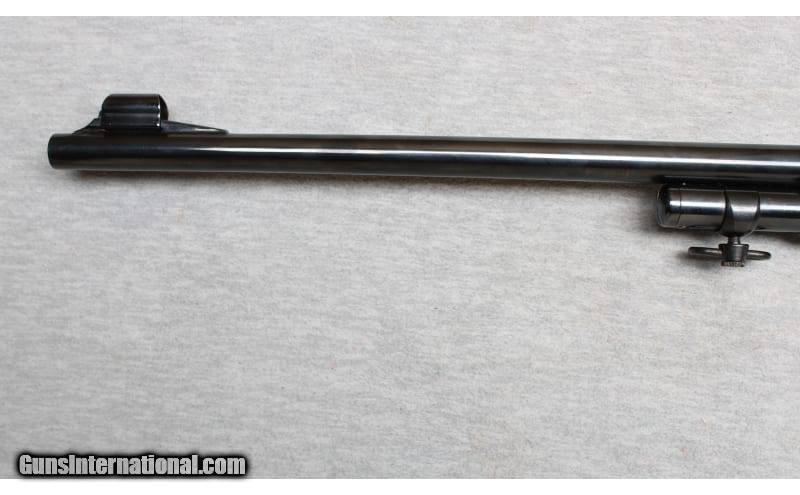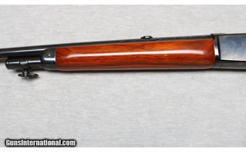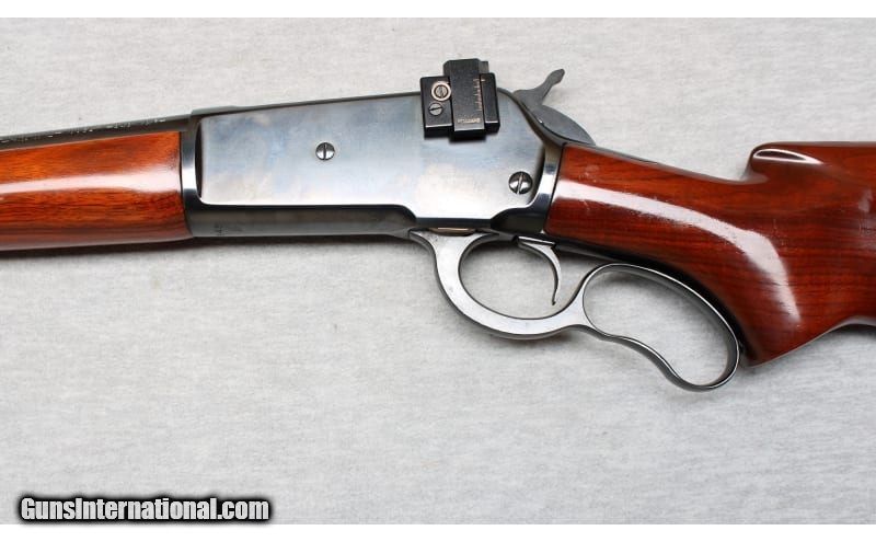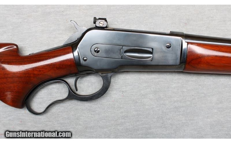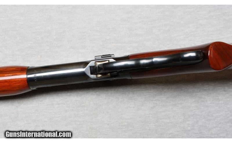 Description: Winchester Model 71 chambered in .348 Winchester. The Model 71 was a slightly improved model 1886 and, with very few exceptions, only chambered in .348 Winchester. This rifle features a 24 inch blued barrel, 2/3 tube magazine hold 4 cartridges, and a pistol grip stock. Manufactured in 1954. The .348 Winchester was introduced in 1936 and was developed for the Winchester Model 71 rifle. The .348 was one of the most powerful rimmed rounds ever used in a lever action rifle. .348 Winchester SOLD Curio/Relic: Yes Metal Condition: Excellent Wood Condition: Excellent Bore Condition: Bright with strong rifling Barrels: 24 Inches Triggers: Factory Fore End: Smooth walnut Butt Pad: Textured metal plate Sights: Williams adjustable peep rear sight and protected front blade Item Location: La Vista, NE |