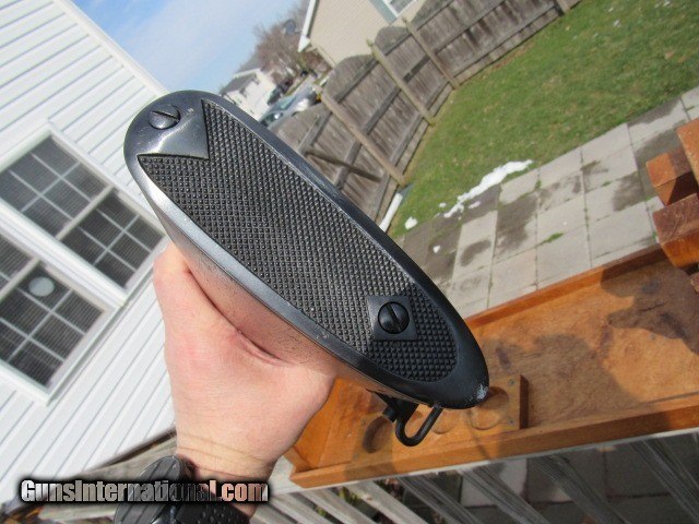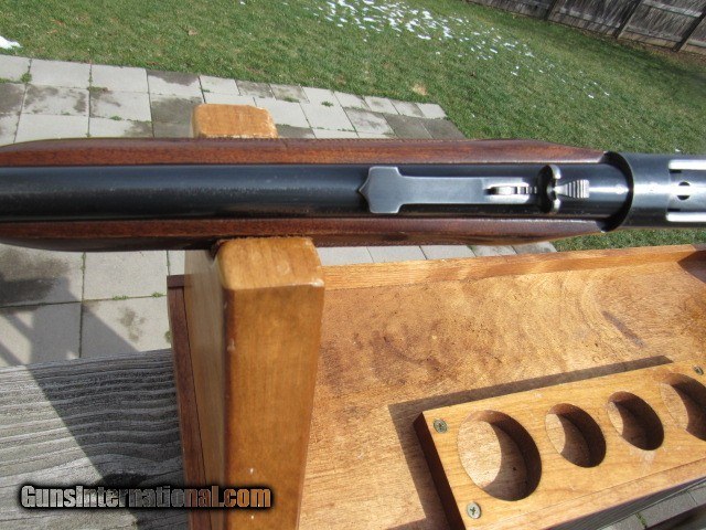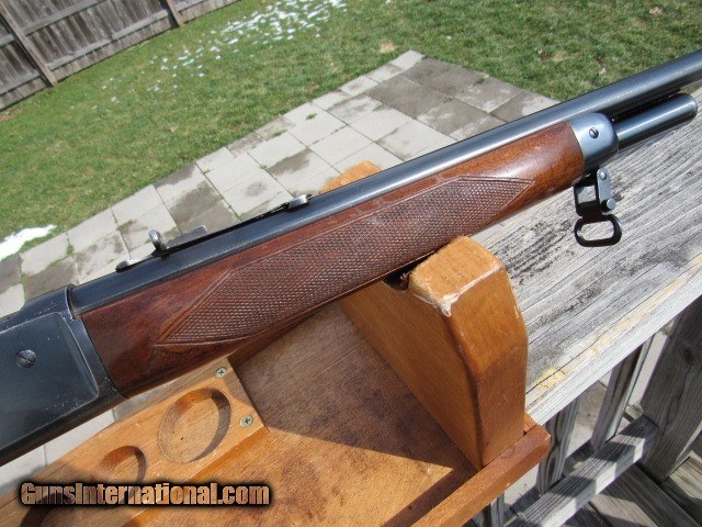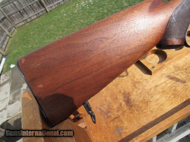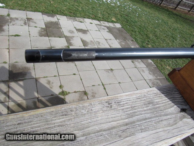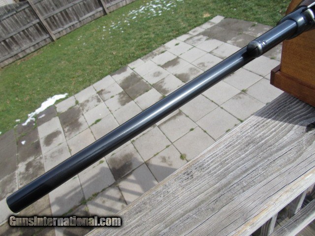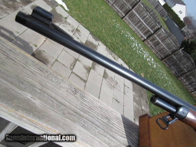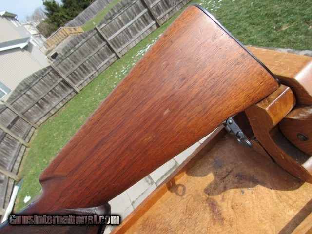 Description: DESCRIPTION: Winchester Model 71 Deluxe rifle, caliber 348 Winchester of course, having all of the correct Deluxe features, including 24" round barrel, 2/3 mag, checkered pistol grip butt stock with steel butt plate, checkered beavertail forearm, ramped front sight, open semi-buckhorn rear sight with thumb print elevator, deluxe sling swivels in butt stock and integral with fore end cap, later short tang and properly not drilled for the bolt peep but properly factory drilled for the side mount receiver sight, serial # 37xxx, made 1953. CONDITION: Barrel and mag tube retain 95% original bright blue with some pinprick loss. Receiver retains 93% bright original blue with some pinprick loss and wear in the carry area on the underside. Stocks are sound with no splits or cracks, no extra holes, never sanded or refinished, retaining most of the original varnish with some bubbling and typical nicks/dings/scrapes from hunting use. Bore is a 9 of 10. Action is strong, half cock safety works as designed. Rifle has been cleaned, test-fired, shoots great, and is ready for action!! Ramped front sight still retains the original sight hood. Excellent example of a later Model 71 Deluxe that will serve the dual role as shooter as well as collector. TERMS: No international sales. Must ship to FFL or C&R license holder (check your local laws for requirements - New York State buyers must use FFL only). Payment by bank check, money order, personal check, or all major credit cards with 3% convenience fee. 3 day non-firing inspection. Buyer pays return shipping. Offers considered. Thanks for looking. Interested in buying single pieces and collections of old firearms, especially Winchester, Colt, S&W, Marlin, Savage and Remington. 315.251.4799 with questions or concerns. SOLD Curio/Relic: Yes Manufacturer: Winchester Model: 71 Serial Number: 37171 Barrel Length: 24" round Caliber Info: 348 Win. Condition: Excellent Metal Condition: Excellent Wood Condition: Excellent Bore Condition: Excellent Triggers: Standard/plain Manufacture Date: 1953 Item Location: New York |