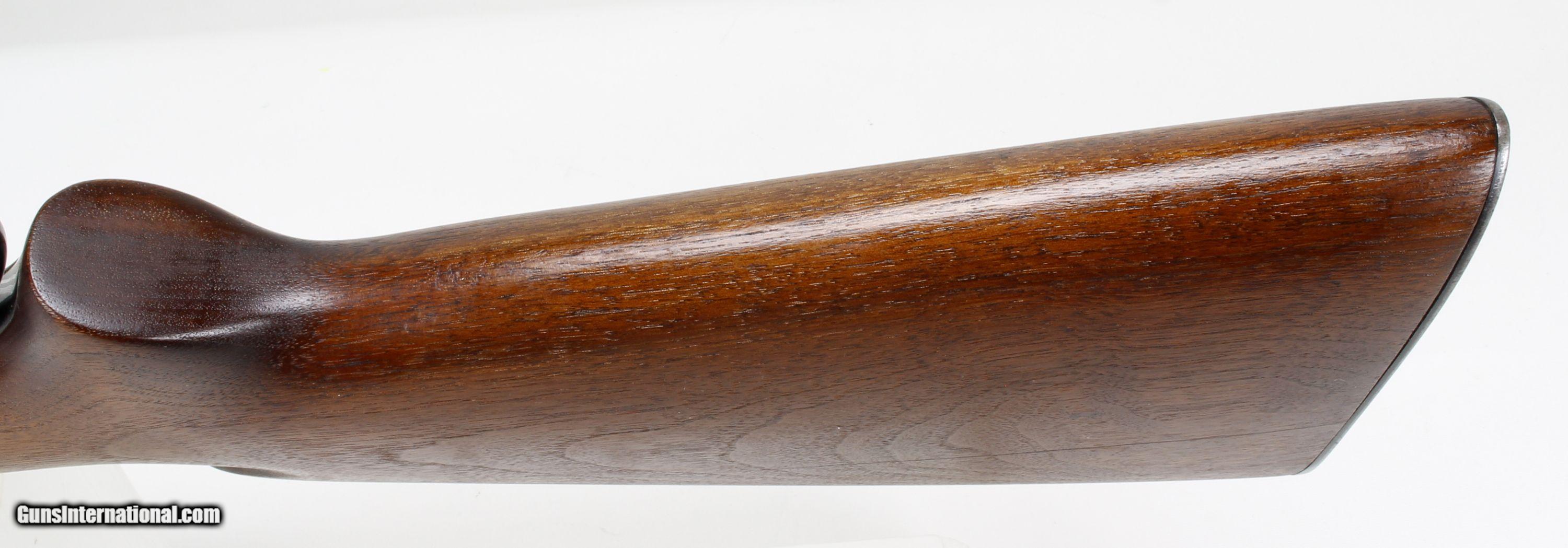 Description: WINCHESTER MODEL 71, 348WIN, 24"Barrel, SN#36152, MFG: 1952. Excellent Bore, Walnut Pistol Grip Stock, Fore-End, Short Tang, with Pronghorn Rear Sight, Hoodless Front Sight. Standard Configuration. Fine Mechanical Condition. Ships to lower 48, W/Insurance; $45.00 SOLD Curio/Relic: Yes Manufacturer: Winchester Model: 71 Serial Number: 36152 Caliber Info: 348 Bore: EXCELLENT Condition: VG Metal Condition: VG |