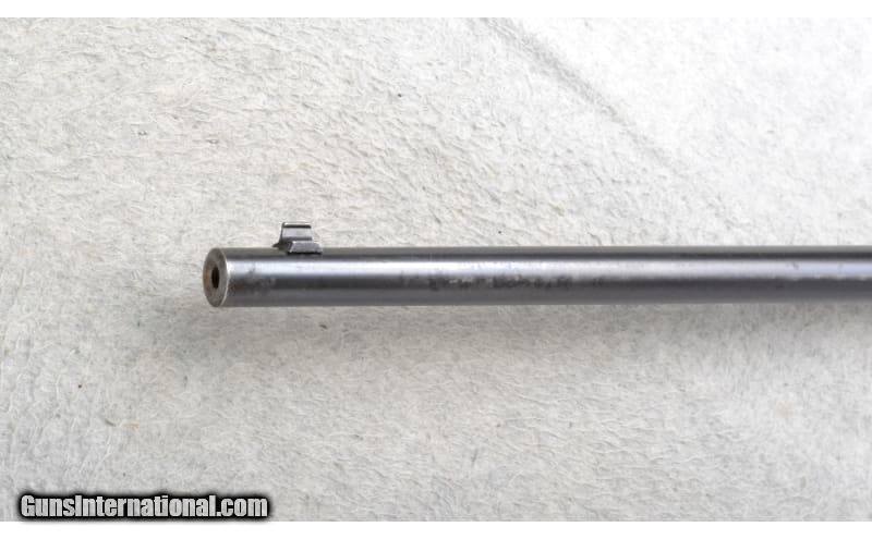 Description: This Winchester Model 74 is a right hand semi-auto rifle in .22 Short Cal. It has a 24 inch barrel. A blade front sight and an adjustable notch middle sight. The butt stock is a smooth grip walnut pistol grip with right side and butt plate loading ports. The forearm is a smooth grip walnut. Serial Number 58537. .22 Short SOLD Chambers: Internal tube magazine with right side quick loading port. Metal Condition: Fair. Has a lot of light freckling. Wood Condition: Good. A lot of top finish wear. Bore Condition: Excellent. Barrels: 24 inch. Stock Dimensions: LOP 13 1/2 inches. Fore End: Smooth grip walnut. Butt Pad: Checkered steel plate with a tube magazine loading port. Weight: 6 lb. 4 oz. Sights: Short blade front. Adjustable notch middle. Item Location: Richfield, WI |