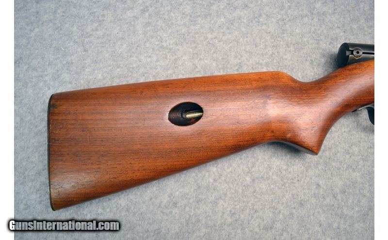 Description: This Winchester Model 74 is a semi-auto rifle in .22 Long Rifle. It has a 22 inch barrel. A blade front sight and an adjustable notch middle sight. The butt stock is a smooth grip hardwood pistol grip with a right side quick loading port. The forearm is a smooth grip hardwood. .22 Long Rifle SOLD Barrels: 22 Weight: 6 lb. 5 oz. Item Location: christiana |