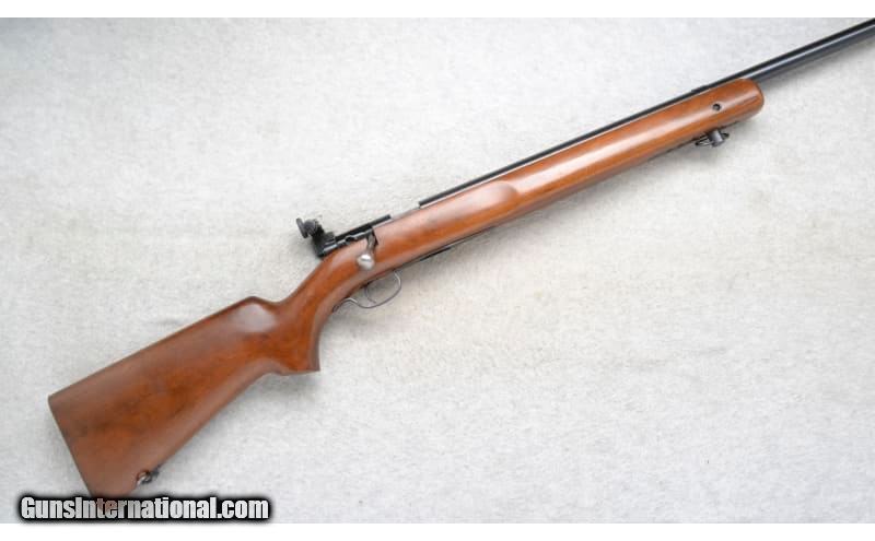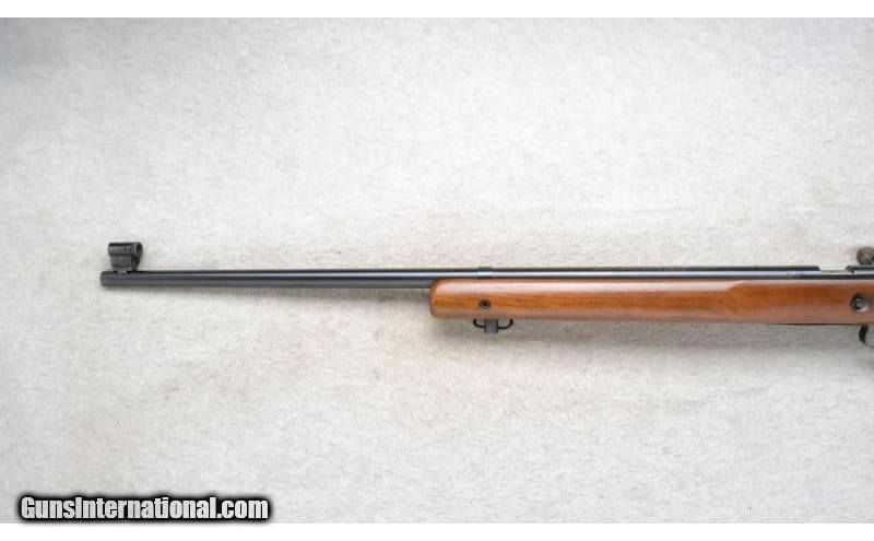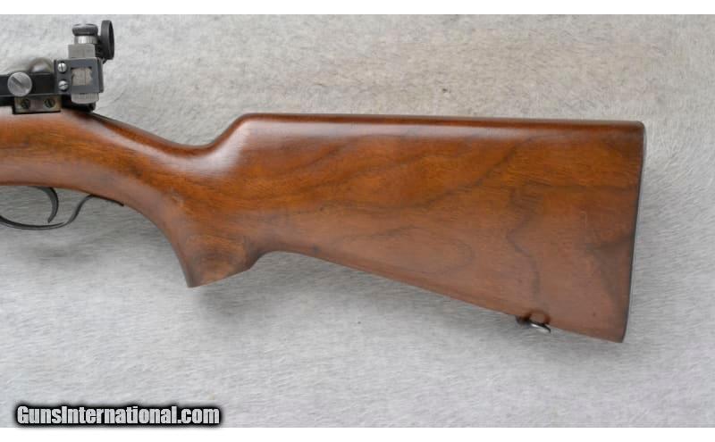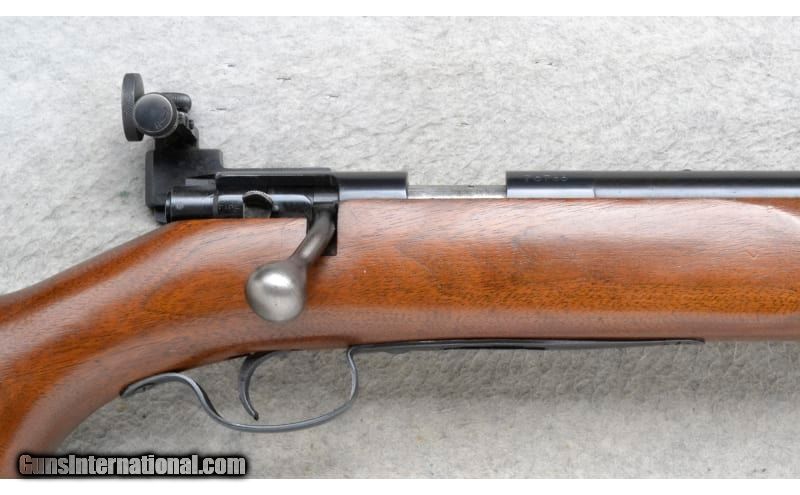 Description: This Winchester Model 75 is a right hand bolt action target rifle in .22 Long Rifle Cal. It has a 28 inch barrel. Redfield target sights front and rear. The butt stock is a smooth grip walnut pistol grip. The forearm is a smooth grip walnut. Serial Number 75798 (1950). .22 Long Rifle SOLD Metal Condition: Very Good. Wood Condition: Very Good. Some minor use marks. Bore Condition: Very Good. Barrels: 28 inch. Stock Dimensions: LOP 13 1/4 inches. Fore End: Smooth grip walnut. Butt Pad: Checkered steel plate. Weight: 8 lb. 4 oz. Sights: Redfield Target sights front and rear. Item Location: Richfield, WI |