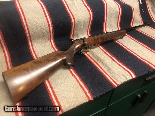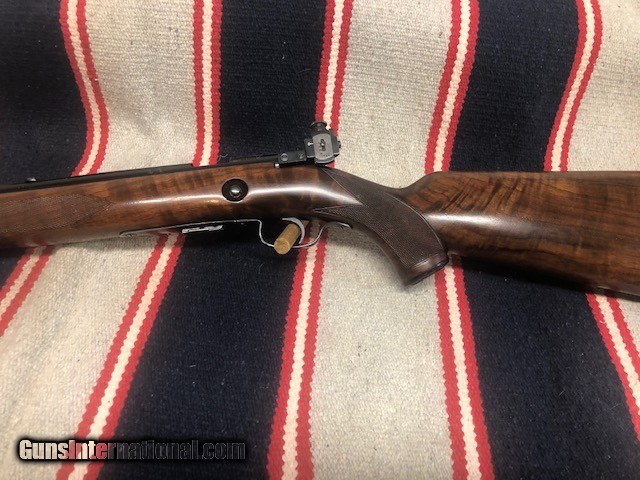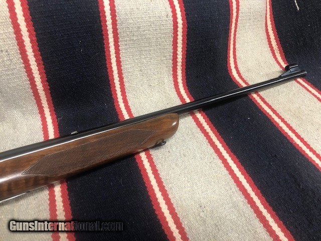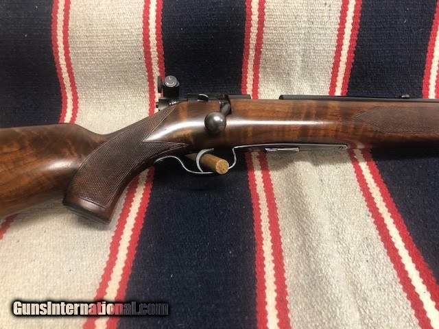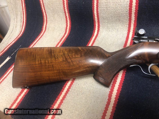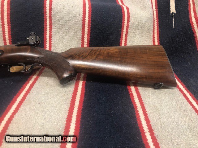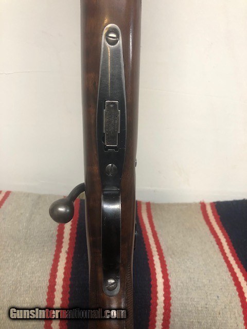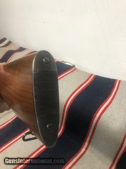 Description: Original and Gorgeous 75 Sporter with GROOVED receiver. 1951 mfg. Lyman 57ES peep. Blueing on receiver and barrel all of 95%. Bottom metal has some wear from mag well forward from being carried I suspect. Wood is highly fiqured and also in great finish condition with a few marks on butt near plate(see pic). The only FLAW in this gun is a hairline crack from the corner of the peep notchout down towards the magazine release.(see pic) I suspect this probably happened when peep was installed.Upon closer inspection of this crack from the inside I'm quite sure this crack was repaired quite some time ago as it is solid, possibly at factory to save this great piece of wood.I'm thinking this has been this way a long time and don't forsee it being an issue in this location. It's not even very noticeable unless you get the light on it right. Anyway, price is reflectant of crack. It's the nicest looking of the dozen or so on GI. And cheapest with grooved receiver. Has original 5rd. mag. Thanks for looking. SOLD |