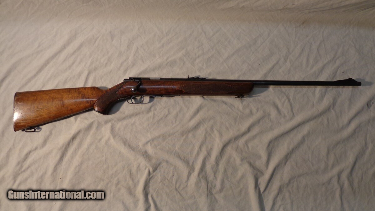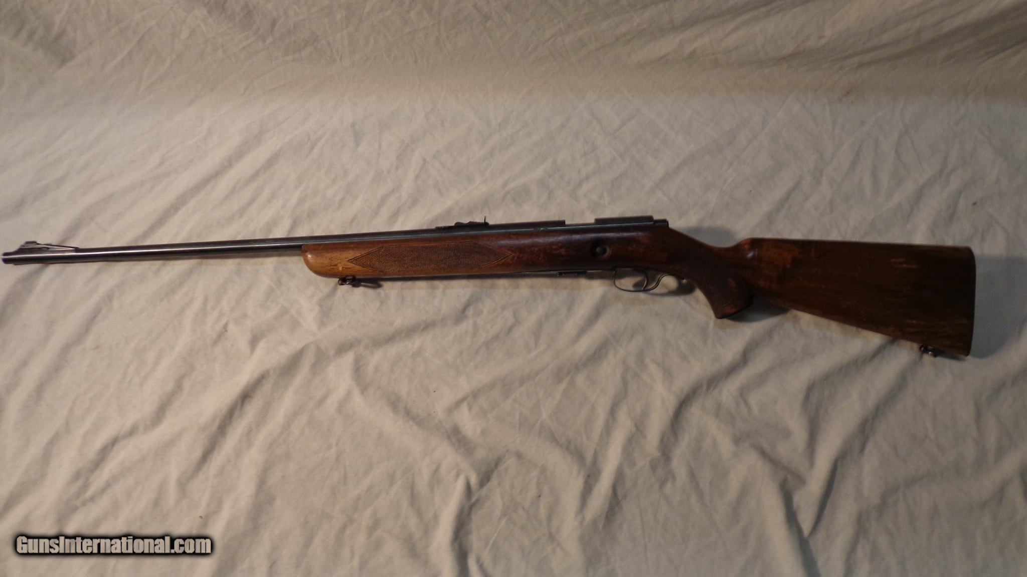 Description: This Model 75 Sporter is in fair condition overall showing some scratches and a few rust spots on the barrel. The stock shows finish wear as well. One magazine is included. SOLD Manufacturer: WINCHESTER Model: 75 Sporter Caliber Info: .22 LR Condition: used Barrels: 24 BARREL Finish: BLUED |