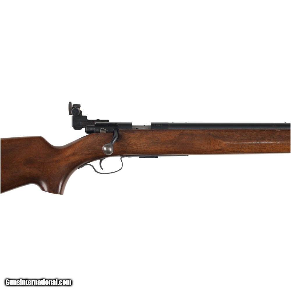 Description: The Winchester 75 was another option intended to deliver the same performance of the fantastic model 52, but at a more attractive price. To that end, the target model was offered with a heavy target stock, 28 inch tapered heavy barrel and fantastic Redfield ¼ moa click sights, with cost being saved in the simplicity of the action and bottom metal. This example is in wonderful condition and is still the world class competition rifle that it was in 1956. The only blemishes that I can find on this rifle are a few dings on the stock, mut it is still mechanically perfect with a clean bore and sharp rifling. Manufactured in: USA Hand: Right Hand Action Finish: Blue Action Description: Bolt Action Metal Finish: Original Barrel Length: 28 Inches Barrel Condition: Very Good Stock Finish: Original Stock Condition: Very Good Type of Butt: Steel Buttplate Grip: Pistol Forend: Not Checkered Extra Barrels: No. SOLD Manufacturer: Winchester Model: 75 Target Caliber Info: .22 Long Rifle Condition: Preowned Metal Condition: Very Good Action: Bolt Action Triggers: Single Fore End: Not Checkered LOP: 13 1/4 Finish: Original Weight: 8.3 Manufacture Date: 1956 Extras: No. Case: NONE |