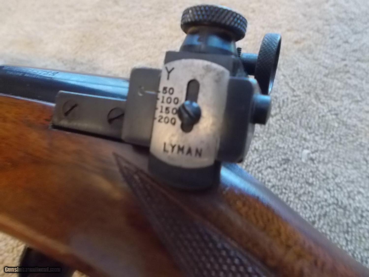 Description: 24" bbl., ramp front w/blade, checkered deluxe American burled walnut, factory buttplate, Lyman rear adjustable correct peep sight, 90% blue, some handling & minor scratches SOLD |