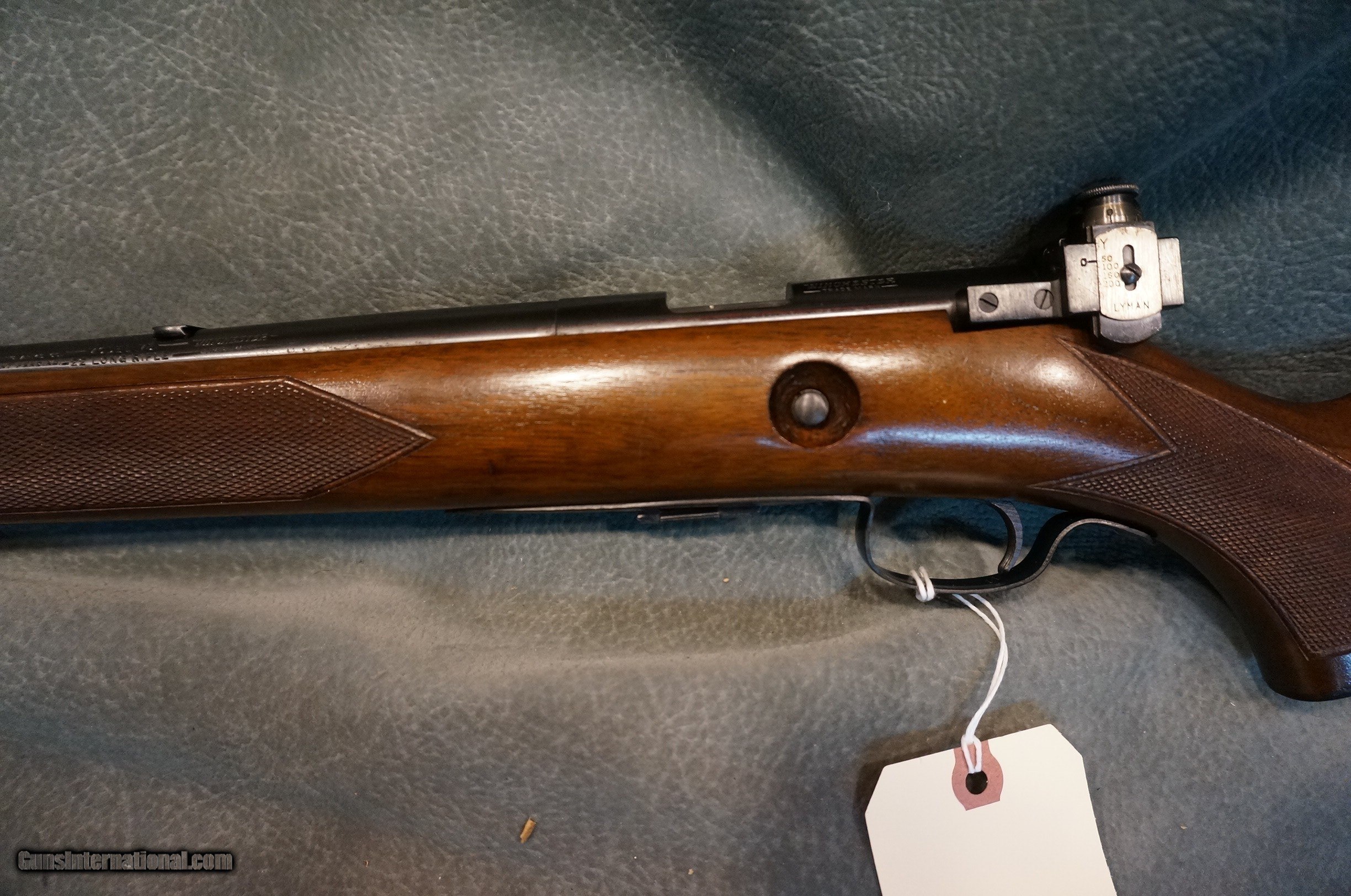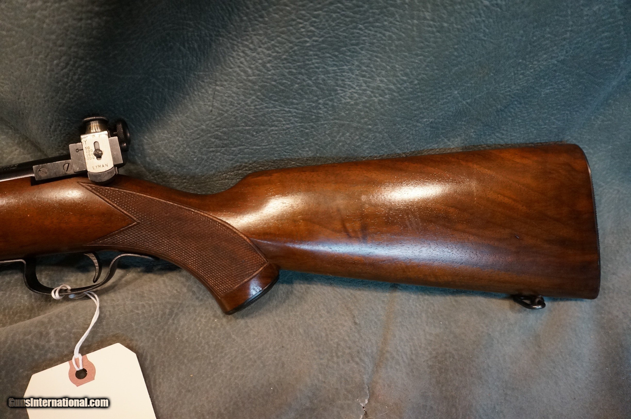 Description: Winchester Model 75 Sporter 22LR 24" barrel,serial #72185,Lyman peep sight,nicely figured wood,99%. GUN COLLECTIONS WANTED FOR CASH! We buy, sell, consign and trade new and used firearms.We will pay finders fees and travel for large collections. This is our 45th year in business. We offer 90 day layaways with 20% down. No return on layaways. Firearms will need to be transferred through a FFL dealer. Prices reflect a cash discount. There will be 3% added to credit card sales. We trade for gold and silver. THANK YOU! SOLD |