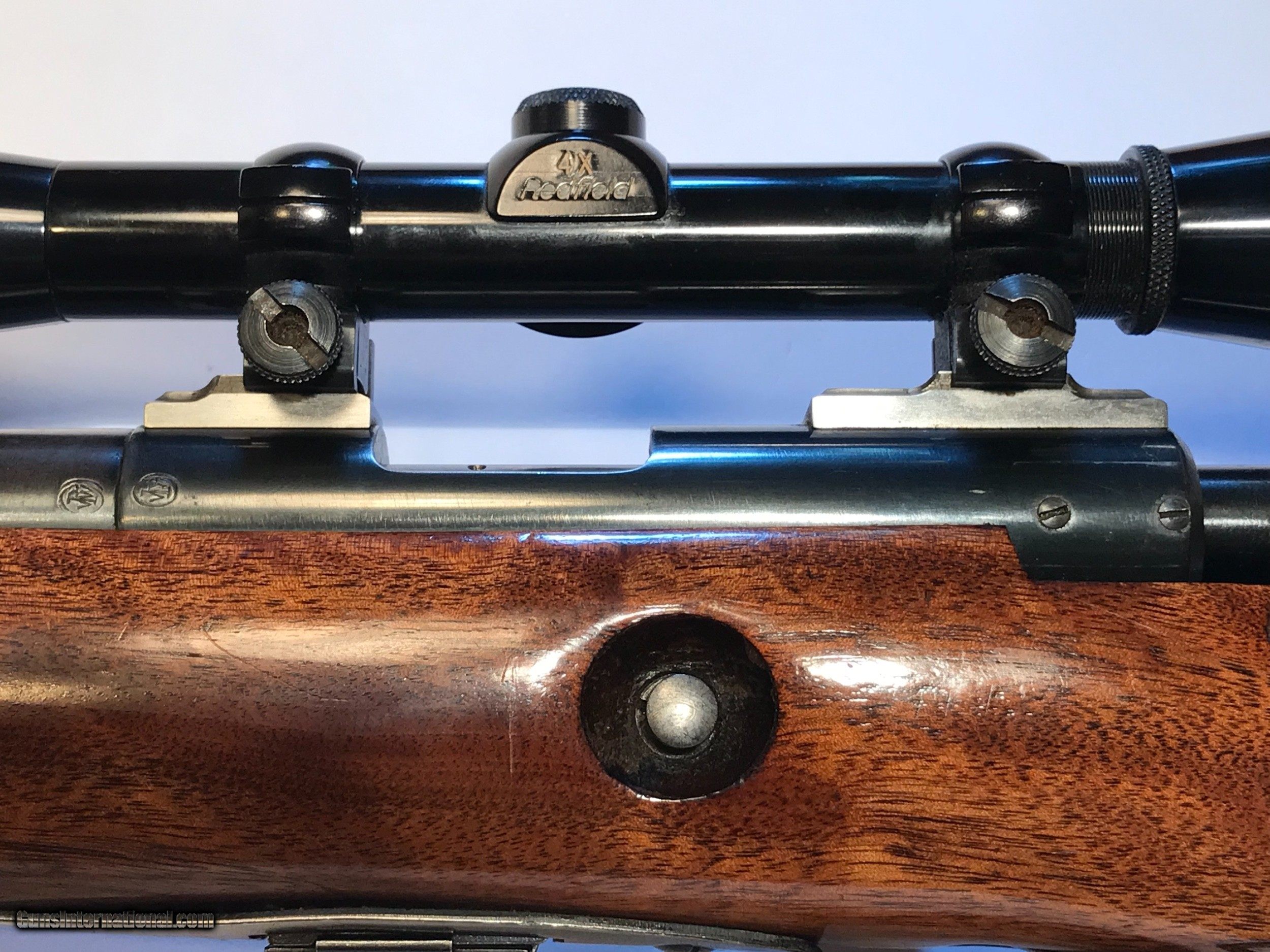 Description: Winchester model 75, bright shiny bore, no rust or pitting anywhere, all original, redfield 3/4 inch 4x rimfire scope, small hairline crack by bolt handle (see last pic) looks like wood grain never any problems in the 20 plus years i've owned it, comes with 3 mags, manufactured 1948, rifle functions as it should, a true tack driver. If contacting by phone please leave message and phone number and I will call you. I get so many calls from numbers I don't recognize (robo calls )I don't pickup. Thanks Shipping 20.00 SOLD Curio/Relic: Yes Manufacturer: Winchester Model: Model 75 Serial Number: 52295 Caliber Info: .22 |