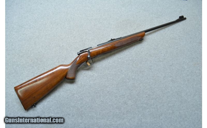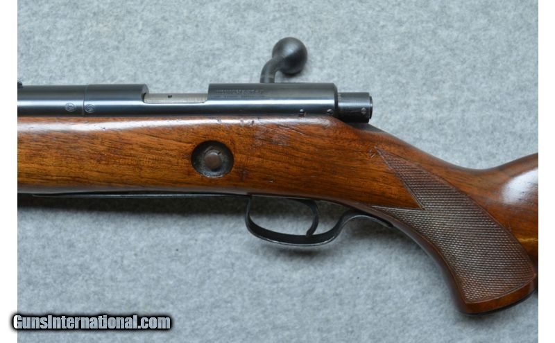 Description: SOLD Manufacturer: SN:64367 Caliber Info: 22 Long Rifle Metal Condition: Very Good Wood Condition: Very Good, Bore Condition: Bright With Sharp Rifling Barrels: 24 Triggers: Single Stage Trigger Stock: Checkered Pistol Grip Stock Dimensions: 13 1/2" LOP Fore End: Checkered Butt Pad: Checkered Steel Buttplate Weight: 5 lbs 6 ozs. Sights: Hooded Ramp Bead Front, Open Rear Sight Item Location: Hazelwood, MO |