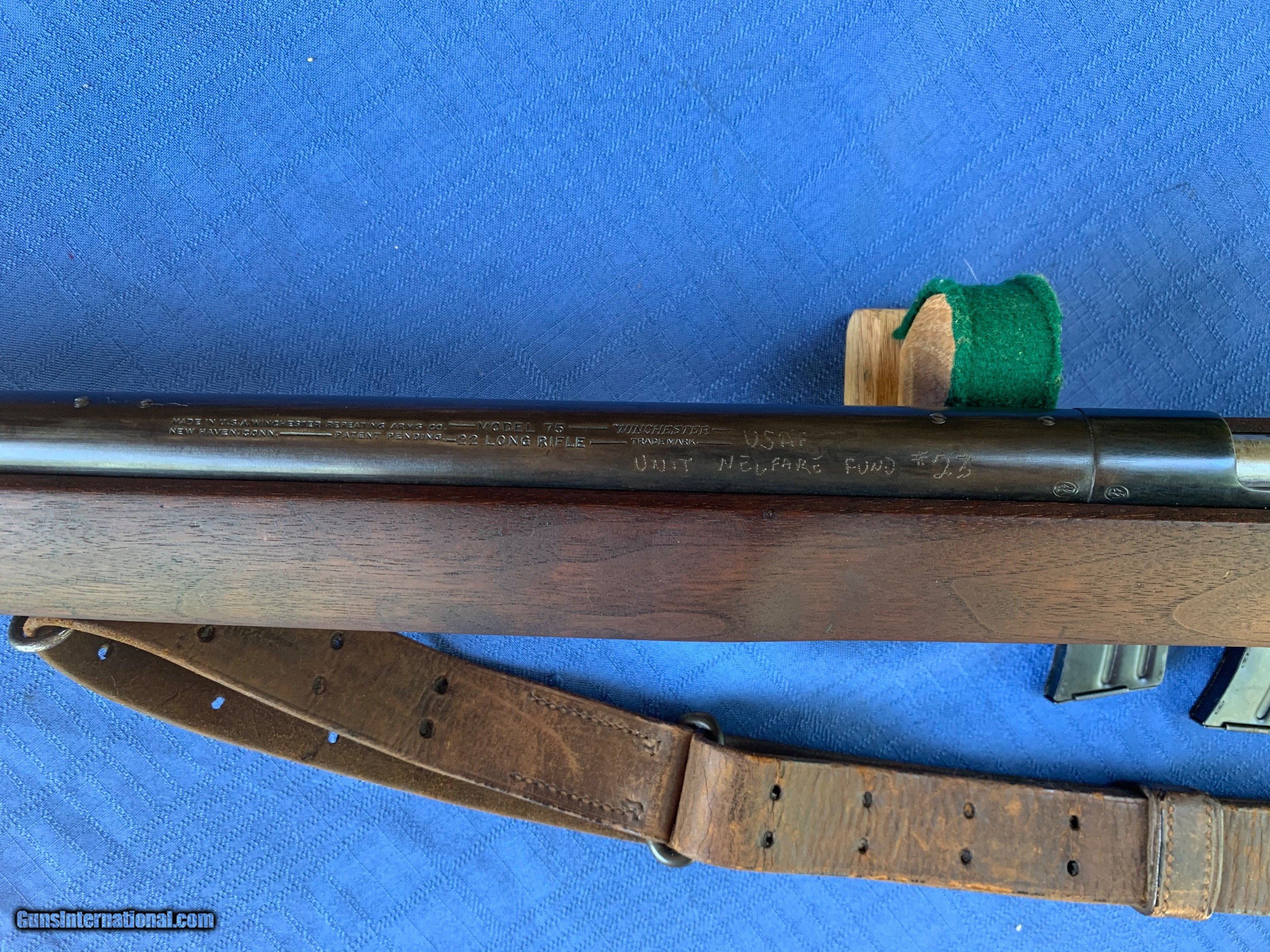 Description: Here's Excellent Example of Winchester Model 75 . 22 caliber . 28" Barrel .Unit marked on barrel . Comes with original sights . Military u.s Issued Leather Sling . 2 original Winchester Magazines .Most of its original finish remaining on metal . Bore and mechanics are excellent plus. Wood is Excellent Plus un-touched Condition . Overall a excellent plus condition Model 75 with WW1 history . Please review my photos and email me with any questions? 3 day inspection as allways . Thank you for looking , Little Jo SOLD Antique: Yes Rifle Caliber: .22 Long Manufacturer: Winchester Model: 75 Serial Number: 74042 |