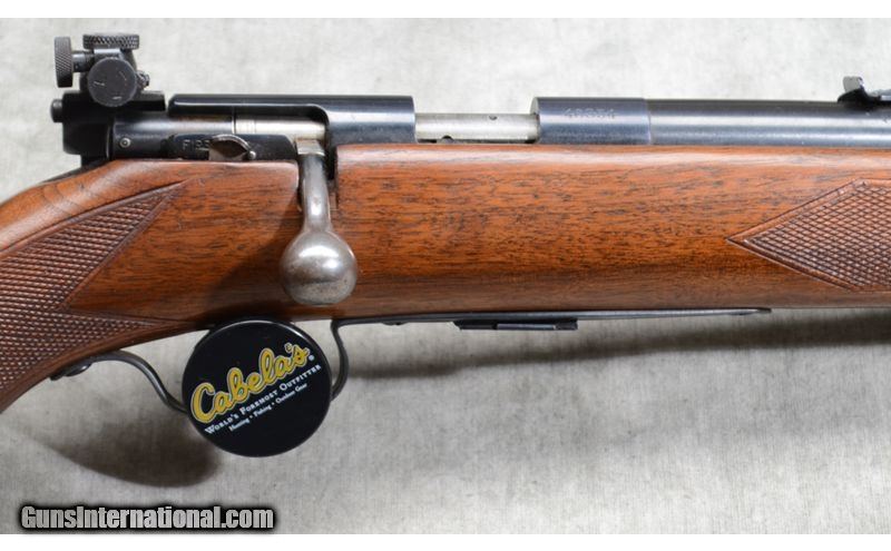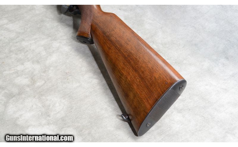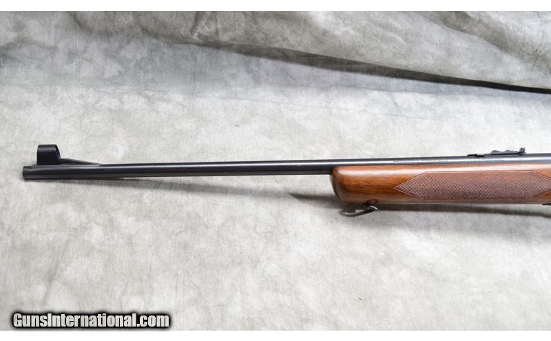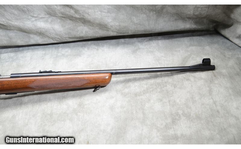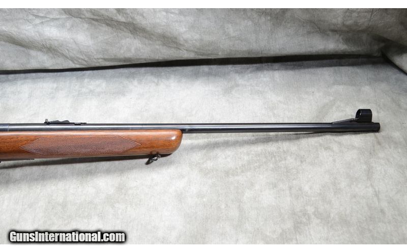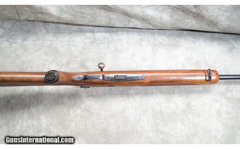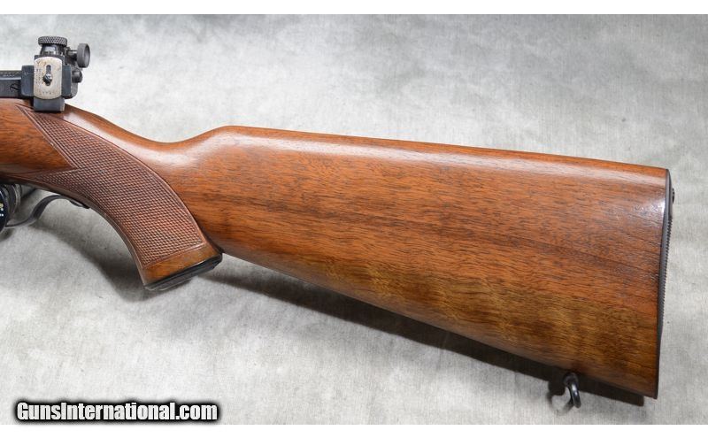Description: This rifle includes factory open sights, hooded bead and ramp notch,Lyman peep accessory rear sight, checkered walnut stock with grip cap, and sling swivels. .22 Long Rifle SOLD Chambers: 5 round detachable magazine. Metal Condition: Very good. There is a small scrape on the barrel and some fading of the blue. Wood Condition: Good to Very Good. There are a number of handling marks but nothing of specific note. Barrels: 23 - 3/4 inch blue barrel. Triggers: factory trigger. Stock Dimensions: 13 - 1/2 Inch LOP. Butt Pad: Steel plate. Sights: Factory hooded bead and notch 'iron' sights. Rear sight is a Lyman 57ES peep sight. Item Location: La Vista, NE |