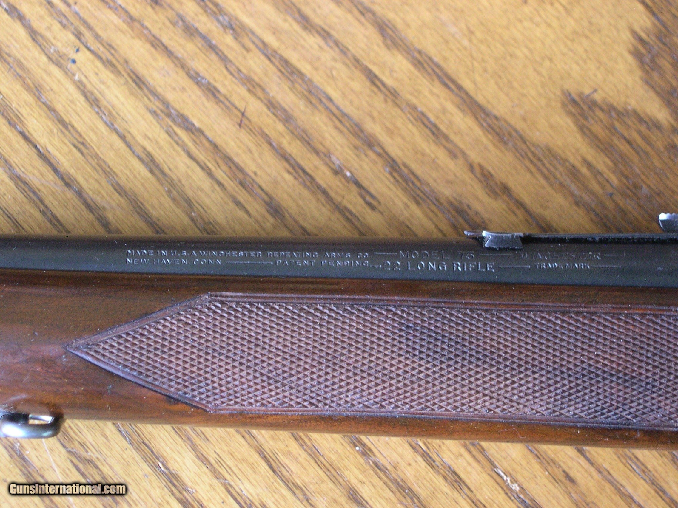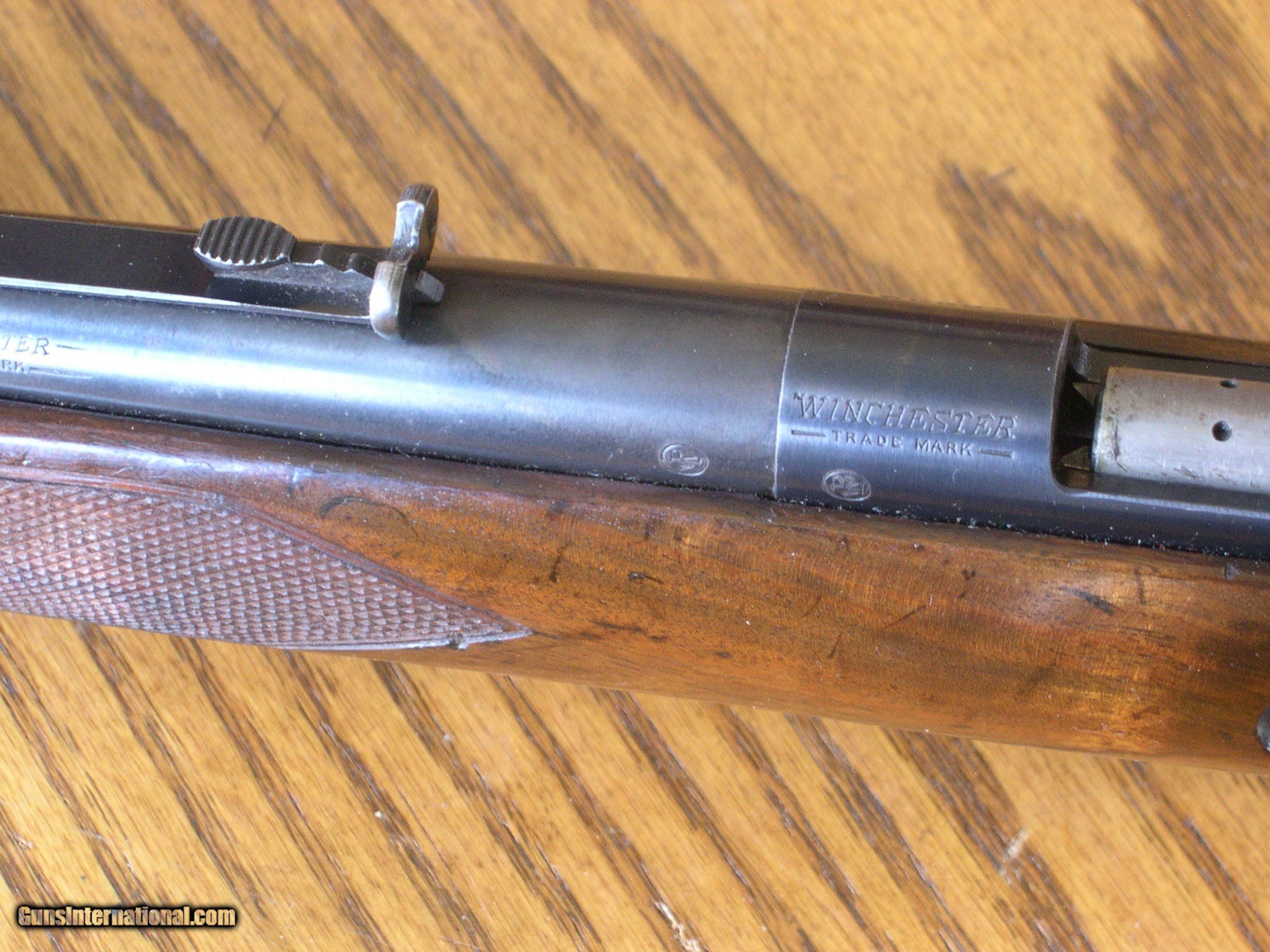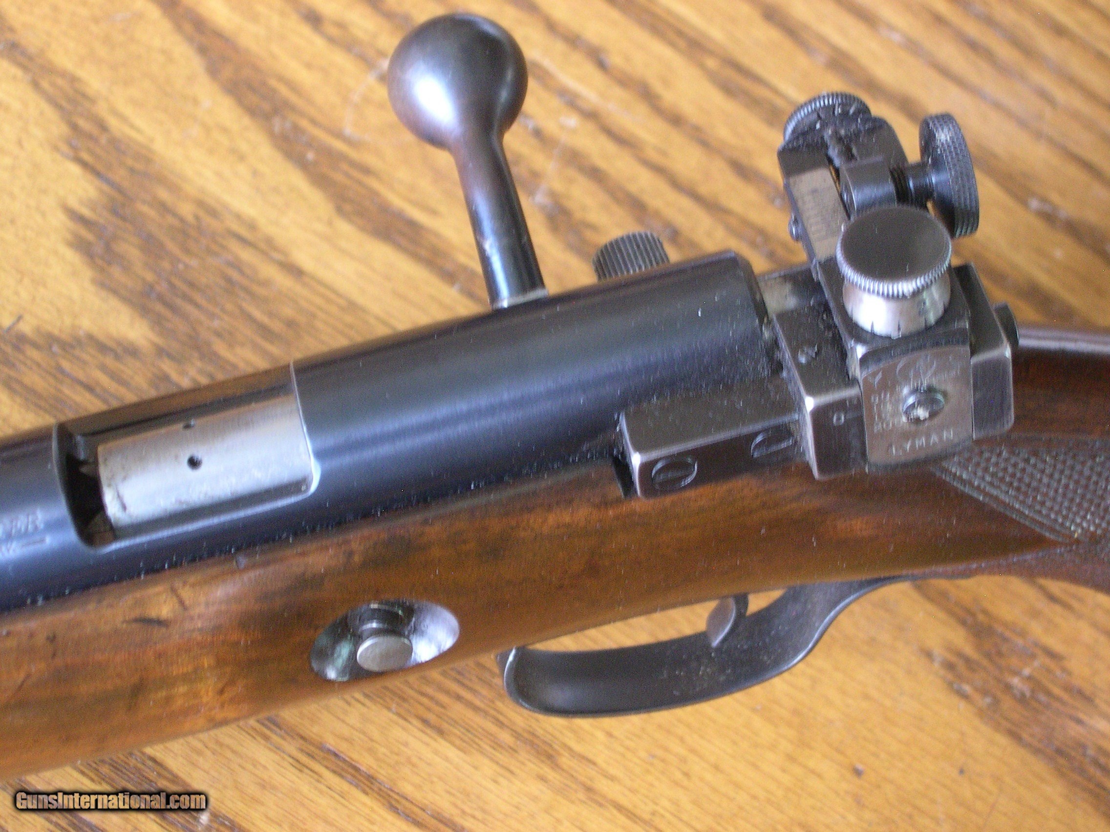Description: Win model 75 Sporter MFG 1947, with 98% origional Blue , Even the floorplate & trigger guard 98%!Exc Plus Bore, 5 shot original magazine, Checkered steel B.P. Original rear peep sight and Front sight w,hood.Orig sling swivels are present, nice sharp checkering on stock, some minor safe marks in finish ! These are getting hard to find in ths orig. condition !! SOLD |