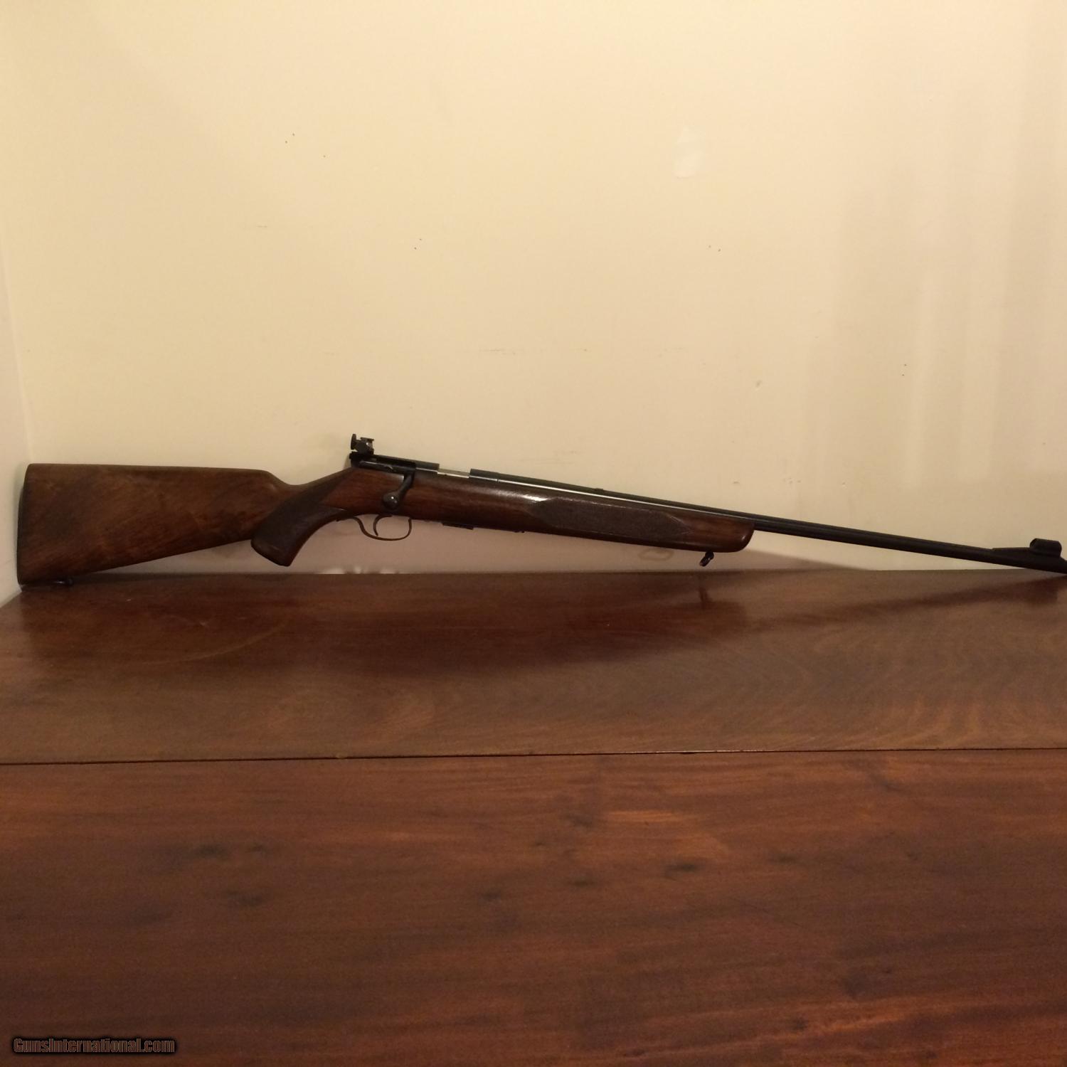 Description: WINCHESTER MODEL 75 SPORTING .22 LR #63xxx with an excellent bore. 98% original blue including the butt plate with a few light scratches at the magazine well. Early gun with correct grooved steel butt plate in excellent condition. Superb 2X wood is likewise in 98% original condition with a very few light handling marks. Correct Lyman 57ES factory installed peep and rear sight dovetail blank with one original and correct magazine. Missing front sight hood. A SUPERB AND SHOWY MODEL 75 SPORTING! SOLD Curio/Relic: Yes |