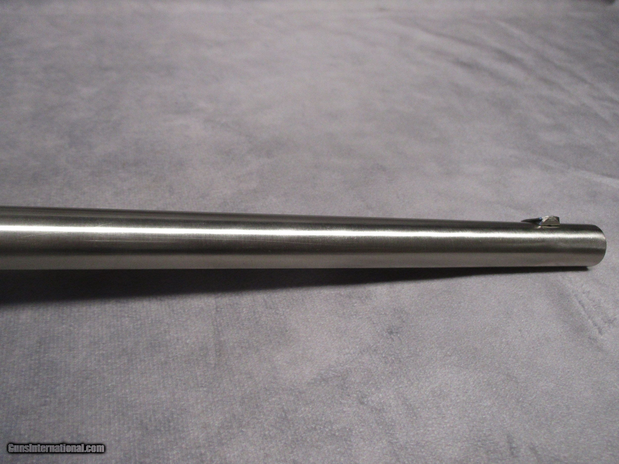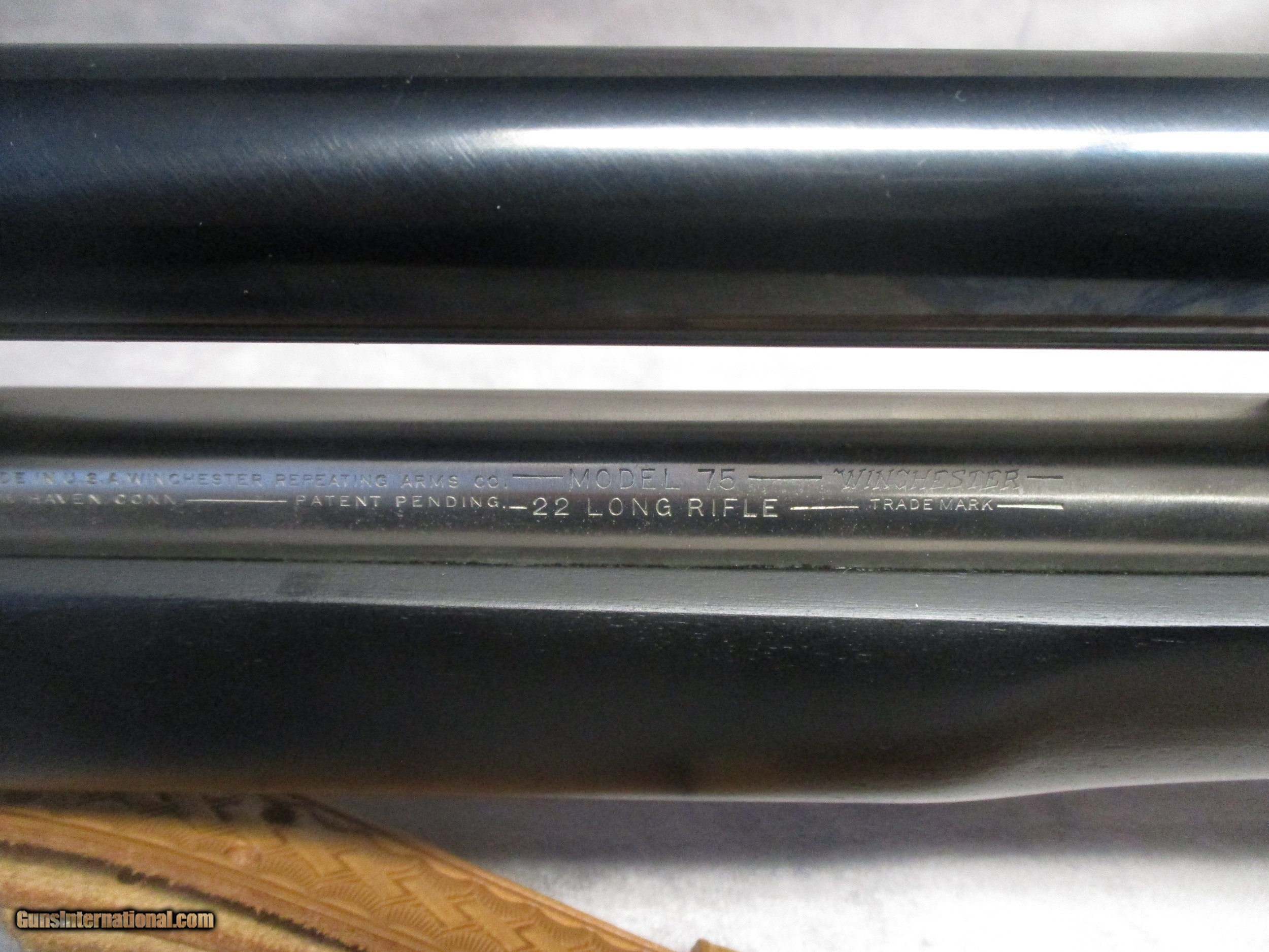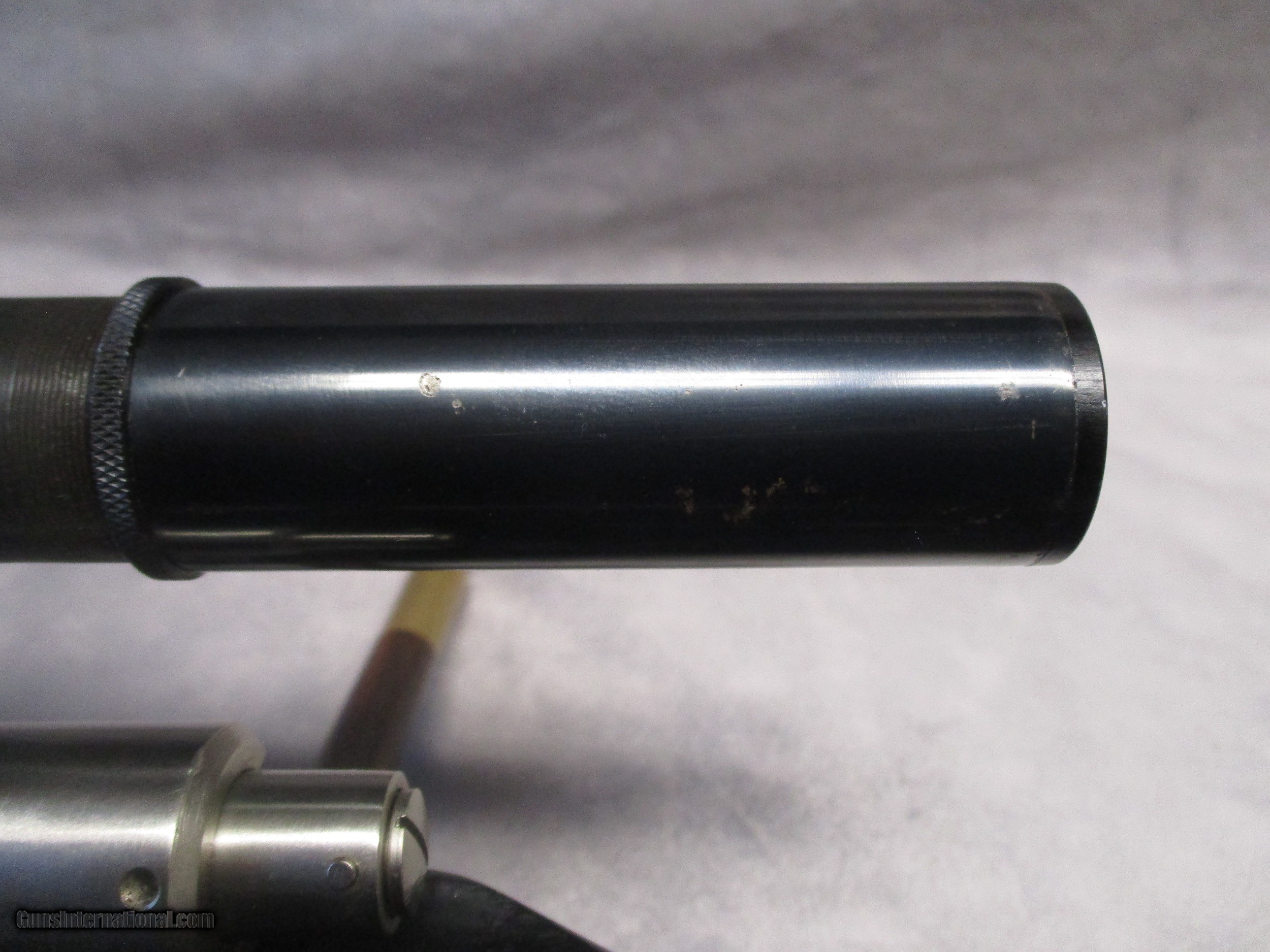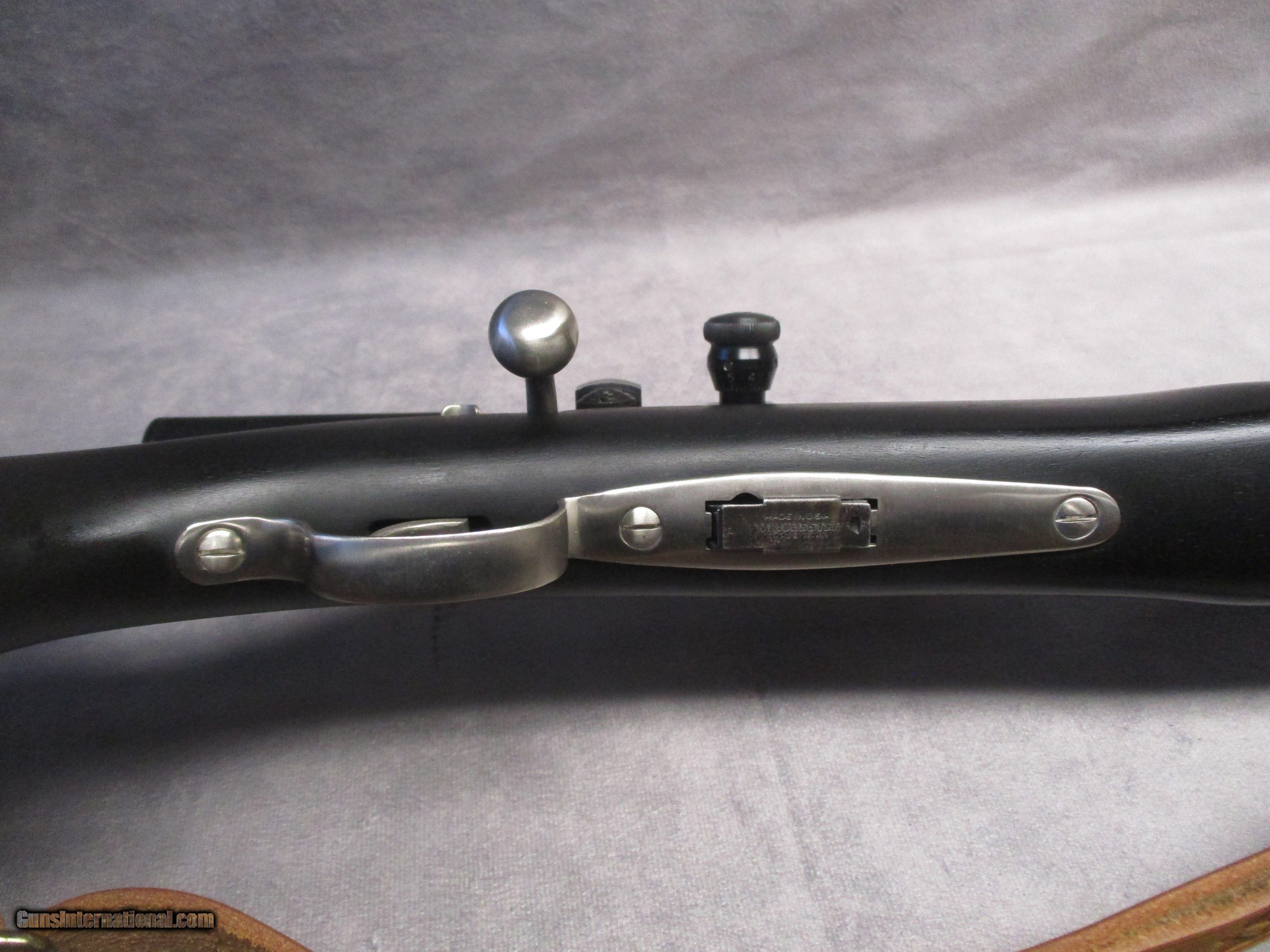 Description: Although this rifle appears to be made of stainless steel, it is not. Examination has confirmed that it is not simply bare carbon steel “in the white” either. It is in fact, nickel plated. The work was done by a professional, hence the “stainless steel” look and the markings on the receiver and barrel being intact. Winchester did experiment with stainless steel for barrels back around 1926 but discontinued this in 1930-31. Winchester reintroduced stainless steel barrels briefly in the late 1940’s to early 1950’s for the Model 52 rifle. This Model 75 was produced in 1941, well out side the range of either time frame. More importantly, Winchester only produced stainless steel barrels during the two time frames; they did not produce stainless steel receivers until much later. Stainless steel was very much in its infancy at the time, and while some firearms, like the M1 Garand with its gas cylinder, had stainless steel parts, the first all stainless steel firearm did not arrive until 1965 with the introduction of the Smith & Wesson Model 60 Chiefs Special. The stock was also carefully refinished to give a black hue as opposed to the usual brownish one. As a Target model, the barrel is 28” long. The mounted scope is an old Redfield fixed 12x built for long range shooting. Overall the rifle is in excellent shape and would be a very accurate shooter. SOLD Rifle Caliber: .22 Long Rifle, .22 Short, .22 Long Manufacturer: Winchester Repeating Arms Co. Model: 75 Target Serial Number: 19775 Bore: Rifled Condition: Excellent Barrel Type: Heavy barrel, 0.625 inch (15.875 mm) muzzle diameter Action: Bolt Action Triggers: Single Stock: Walnut with black finish Fore End: Walnut with black finish Butt Pad: Metal plate LOP: 13.5 inches (343mm) Finish: Nickel Sights: Redfield U00026 12x Target Scope Manufacture Date: 1941 Extras: Leather Sling |
