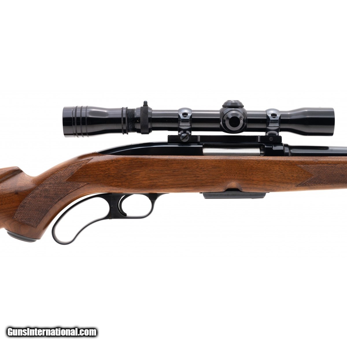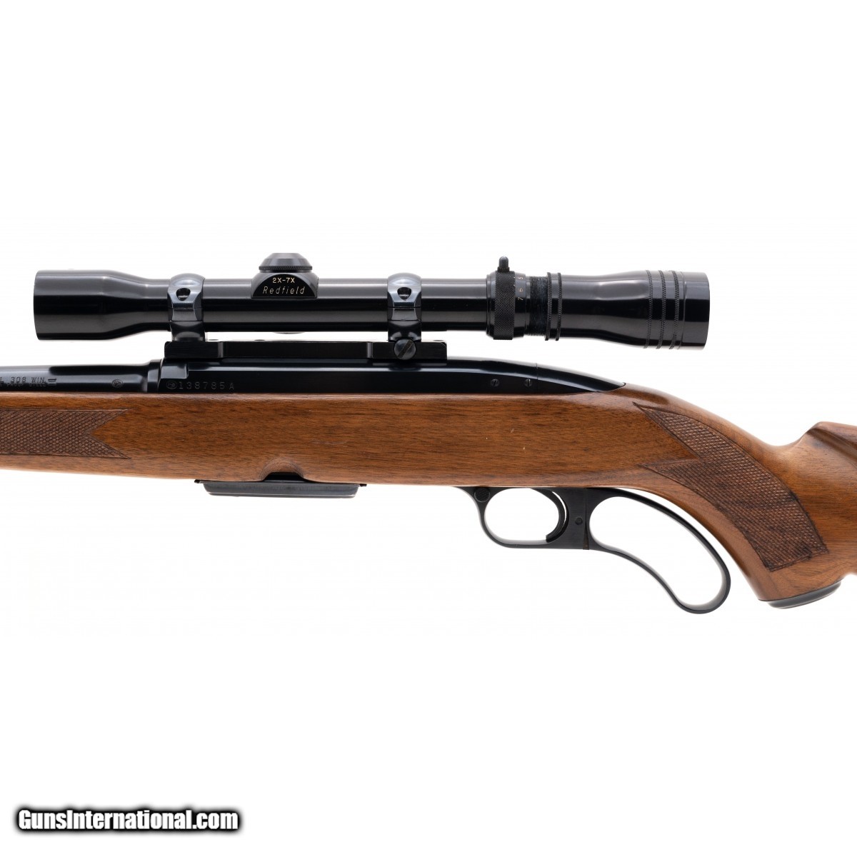 Description: " SN: 138785A. Made in 1962, 308 caliber with a 22"" barrel. Scarce pre-64 lever action rifle in excellent condition. Has a vintage Redfield scope. Consignment. SOLD |