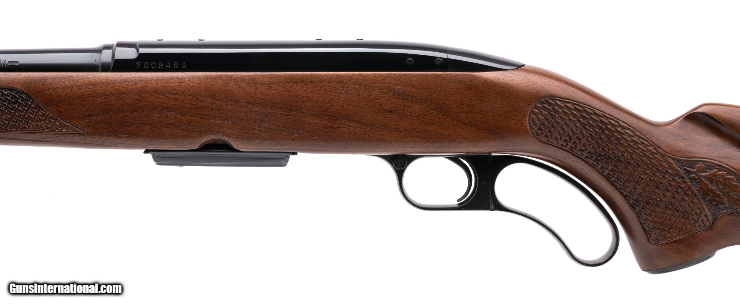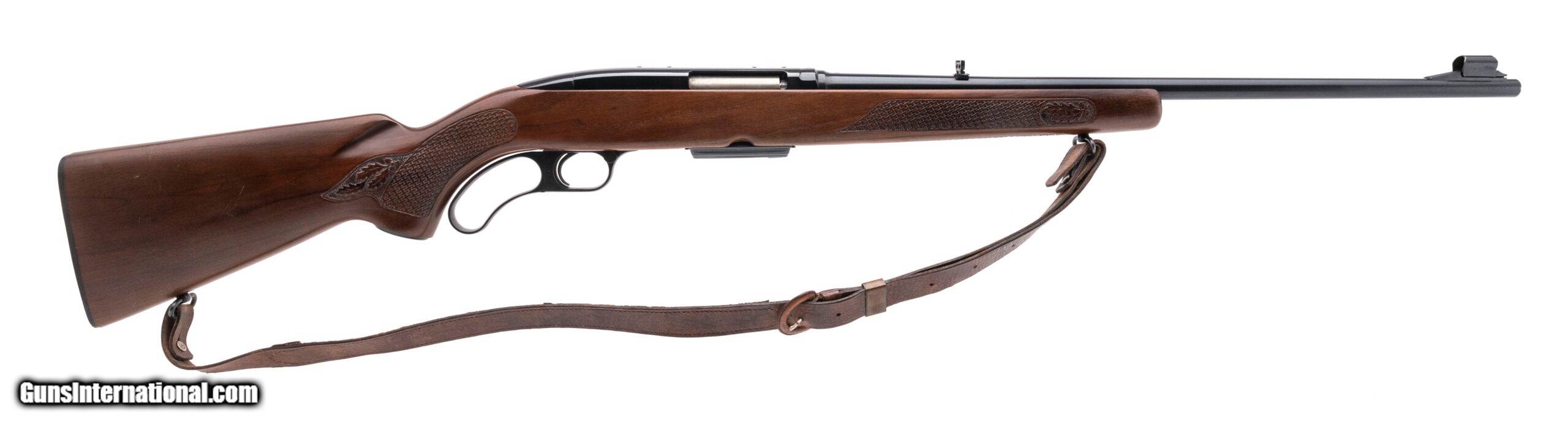 Description: "SN: 200848A. Made in 1966, .243 Win with an 21"" barrel. Bore is bright with excellent rifling. Lever action rifle. Finish is in very good condition with minor wear along the top of barrel. Wood stock is in very good condition with handling wear at the end of buttstock. Overall condition is very good. Comes with Leather sling. SOLD Curio/Relic: Yes |