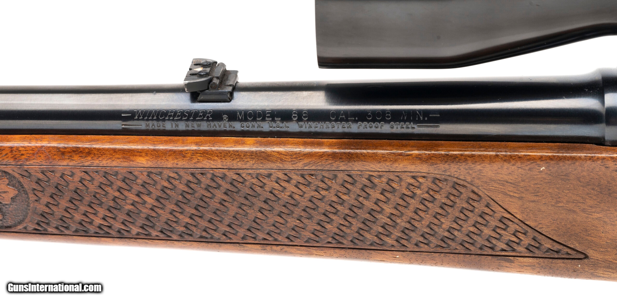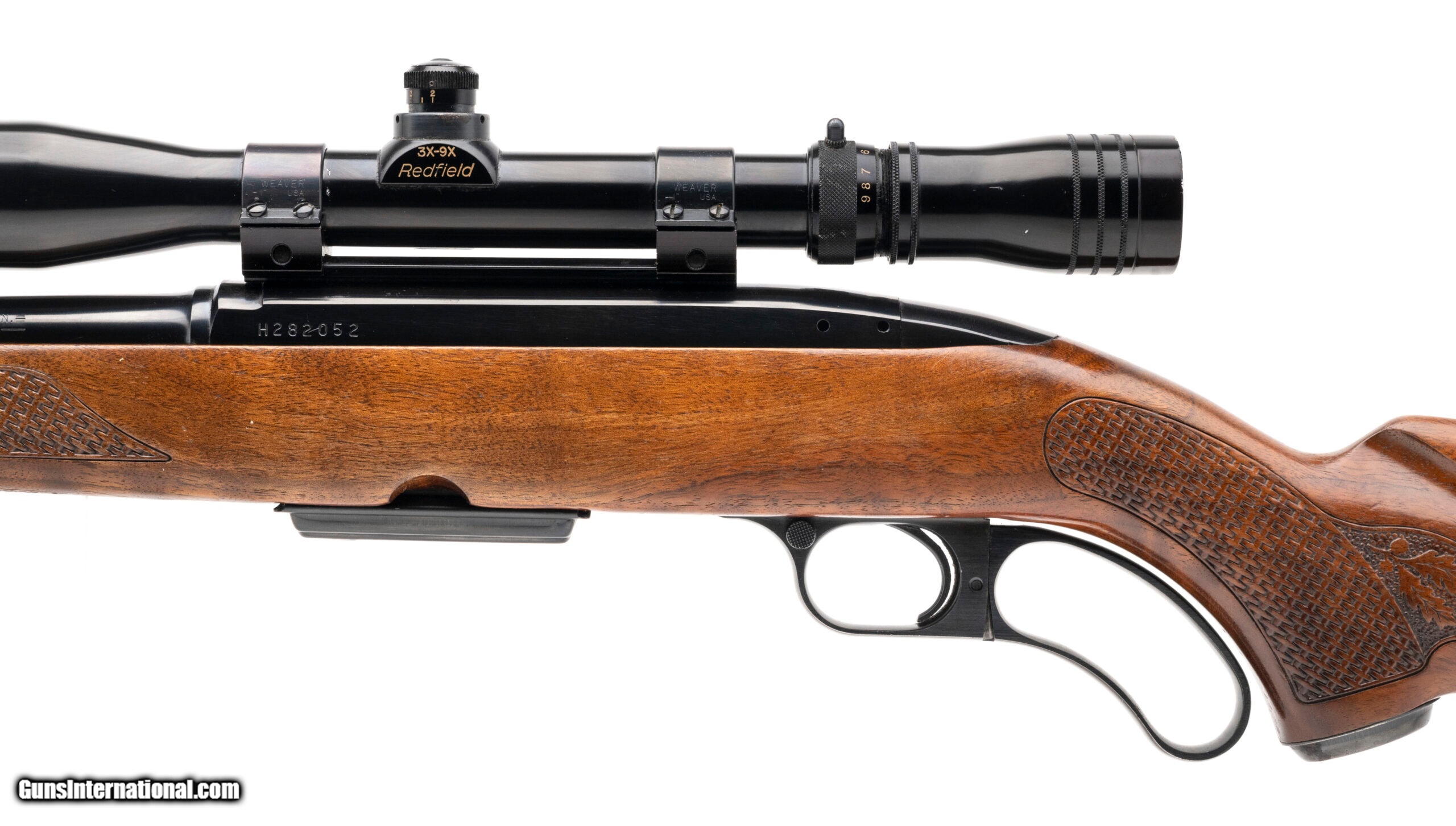 Description: "SN: H282052. Made in 1973, .308 Win with a 22"" barrel. Lever action sporting rifle with checkered walnut stock. Has a Redfield 3x9 scope. The metal is excellent, the stock has a few marks. Overall very good condition. SOLD |