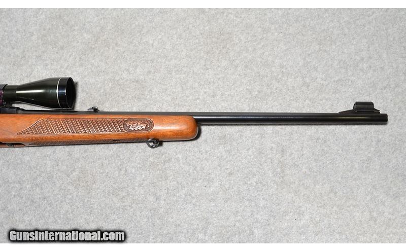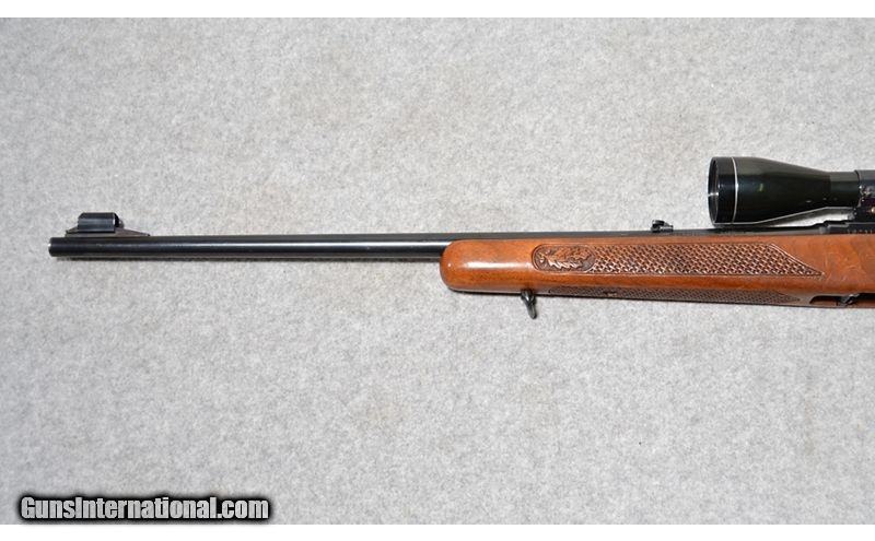Description: Winchester model 88 in .246 Winchester. The 22" barrel is in excellent condition with only a few light scratches noted. Bore is bright with good rifling. Wood stock with checkered pistol grip and fore end is in good shape. Numerous scratches and rub marks noted throughout, with a couple that go through the finish to wood. Bases and one inch scope rings hold a 3-9×40 Tasco scope. Grooved trigger with a 13 1/2" LOP. Ready for fall hunting! .243 Winchester SOLD Metal Condition: Barrel and receiver are in excellent condition with only a couple of light scratches noted. Wood Condition: "Checkered wood pistol grip stock and checkered fore end. In good condition with scratches and rub marks noted throughout, with only a couple going through the finish to wood. Bore Condition: Bore is bright with good rifling. Barrels: 22" barrel. Triggers: Grooved trigger. Stock Dimensions: 13 3/4" LOP Weight: 7 lb - 15 oz Sights: "Bases, rings, and Tasco 3-9 x40 scope. Item Location: Mitchell, SD |