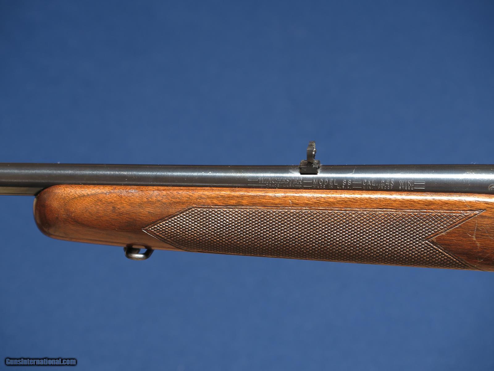 Description: Winchester 88 243. Pre 64. Clover leaf tang. 96%. Weaver scope base. Excellent bore. SOLD |